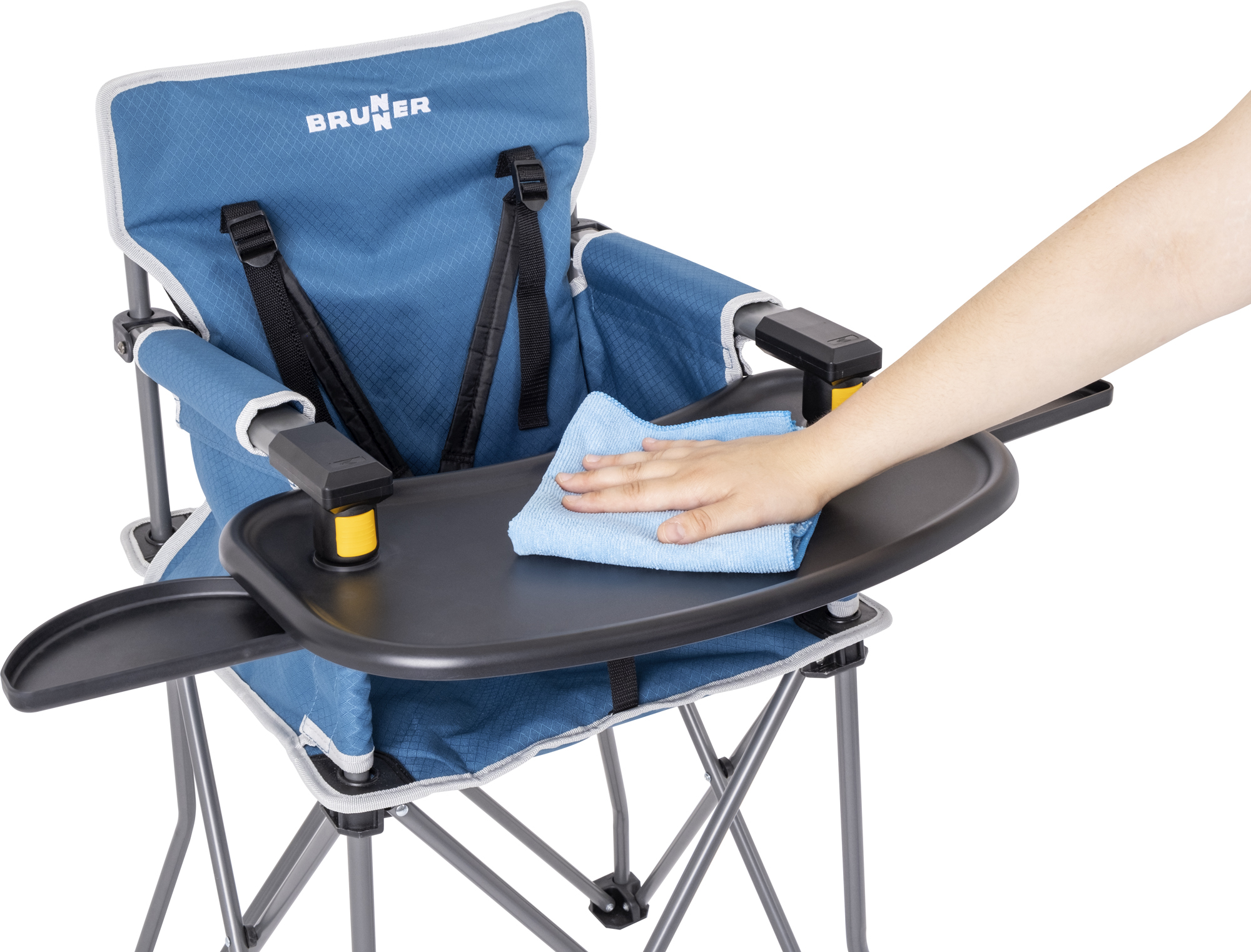 Constructed with a special safety steel frame, the highchair provides exceptional stability, preventing any risk of overturning. The padded seat is not only comfortable but also easily washable, ensuring hygiene during your travels. An adjustable 3-point harness secures your child, offering peace of mind during mealtime.