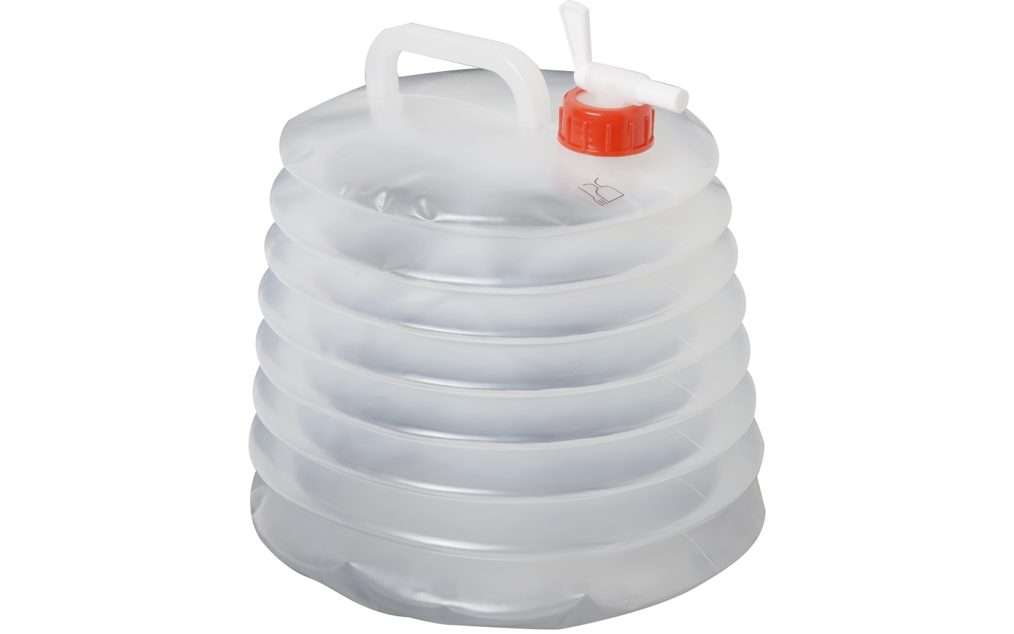 Expandable water carrier made from food proof plastic material. With revolving ON-OFF tap.