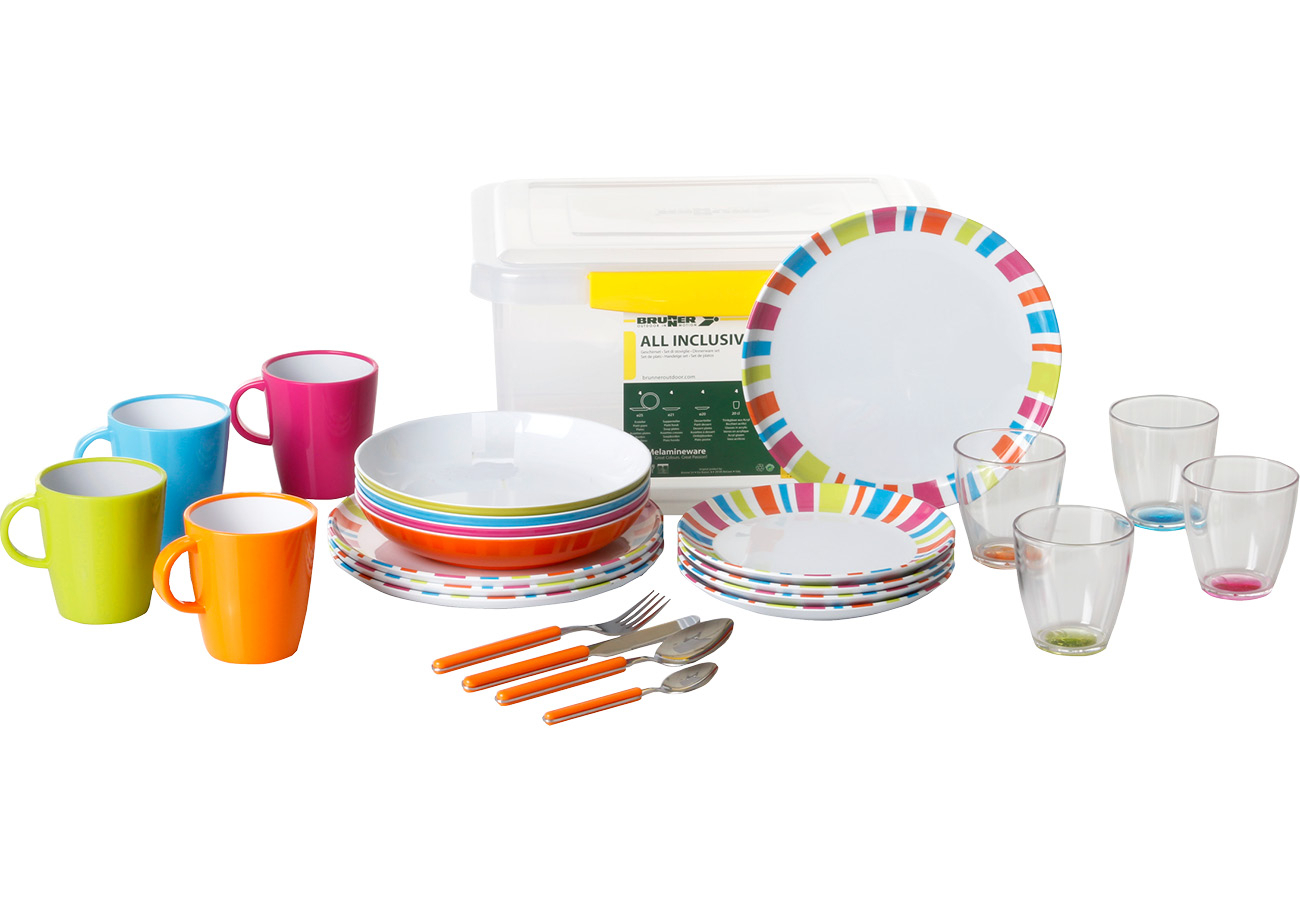 Melamine set (36 pieces) with transport box and the anti-slip system