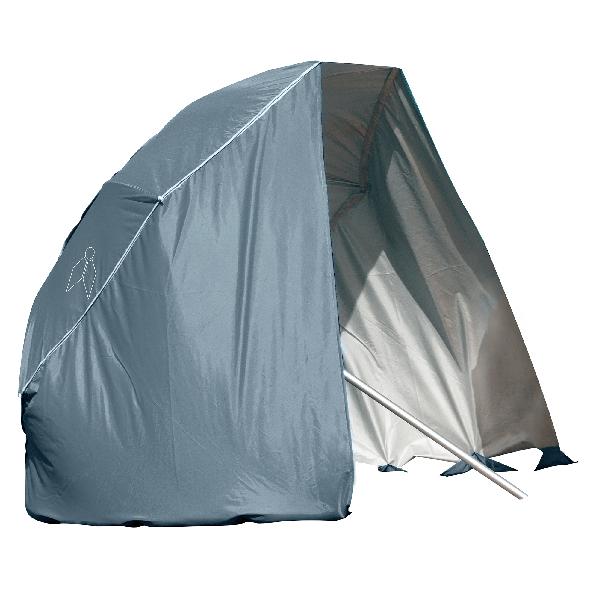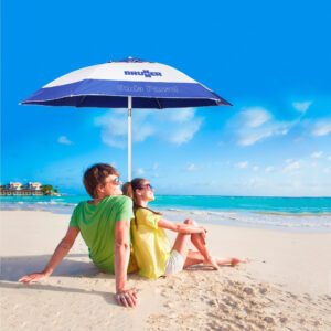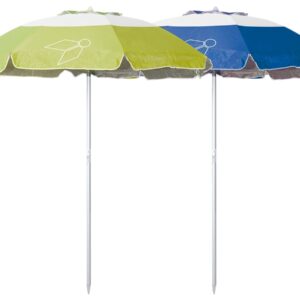 Smart beach parasol with special fixing straps that allow to fix likewise 1 or 2 shade offering side walls.