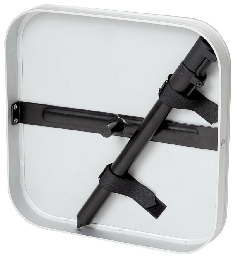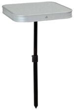Practical beach table with adjustable leg made of painted steel.