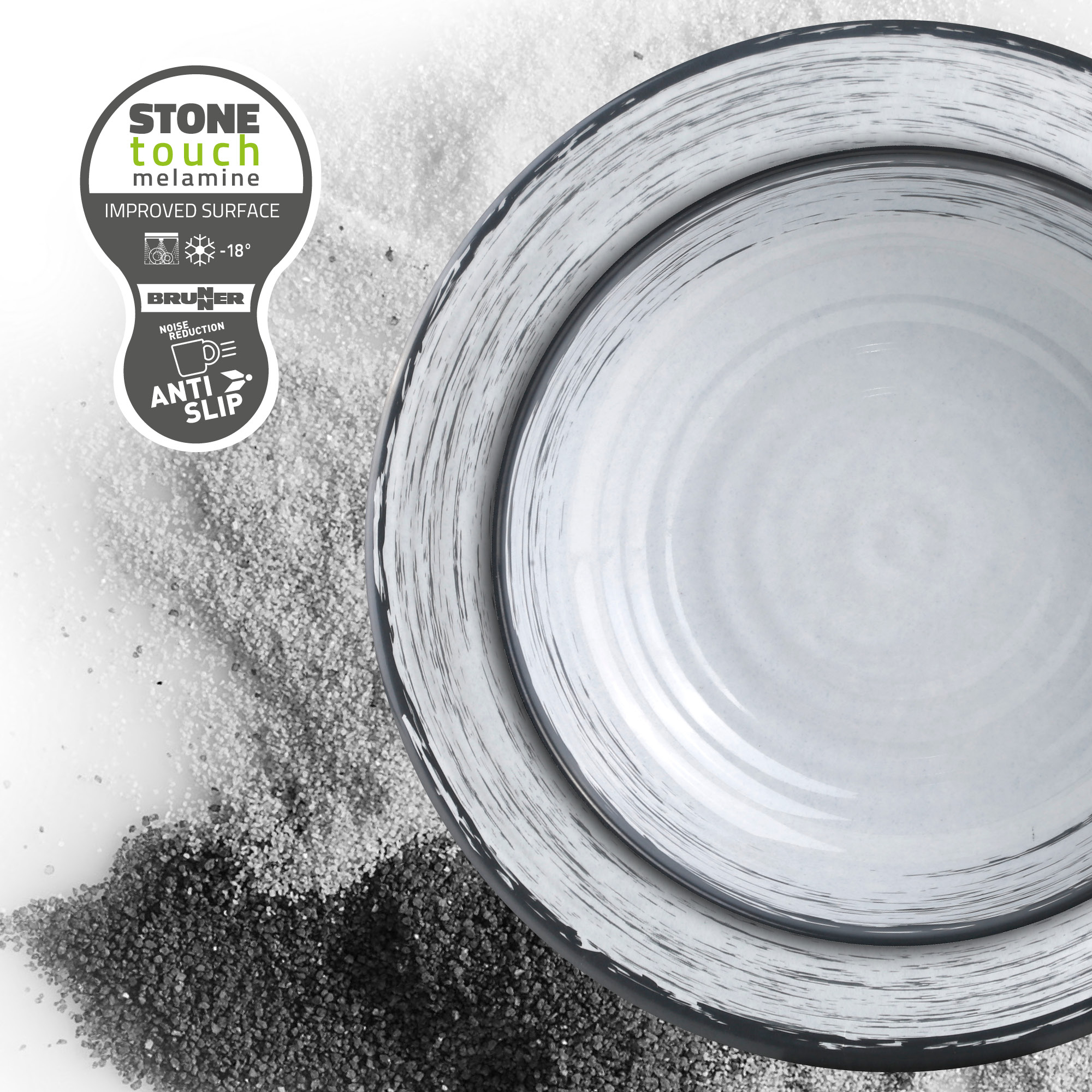 Each piece in the Blue Bay 36-Piece Melamine Dinnerware Set is equipped with a special rubber ring on the base, ensuring: