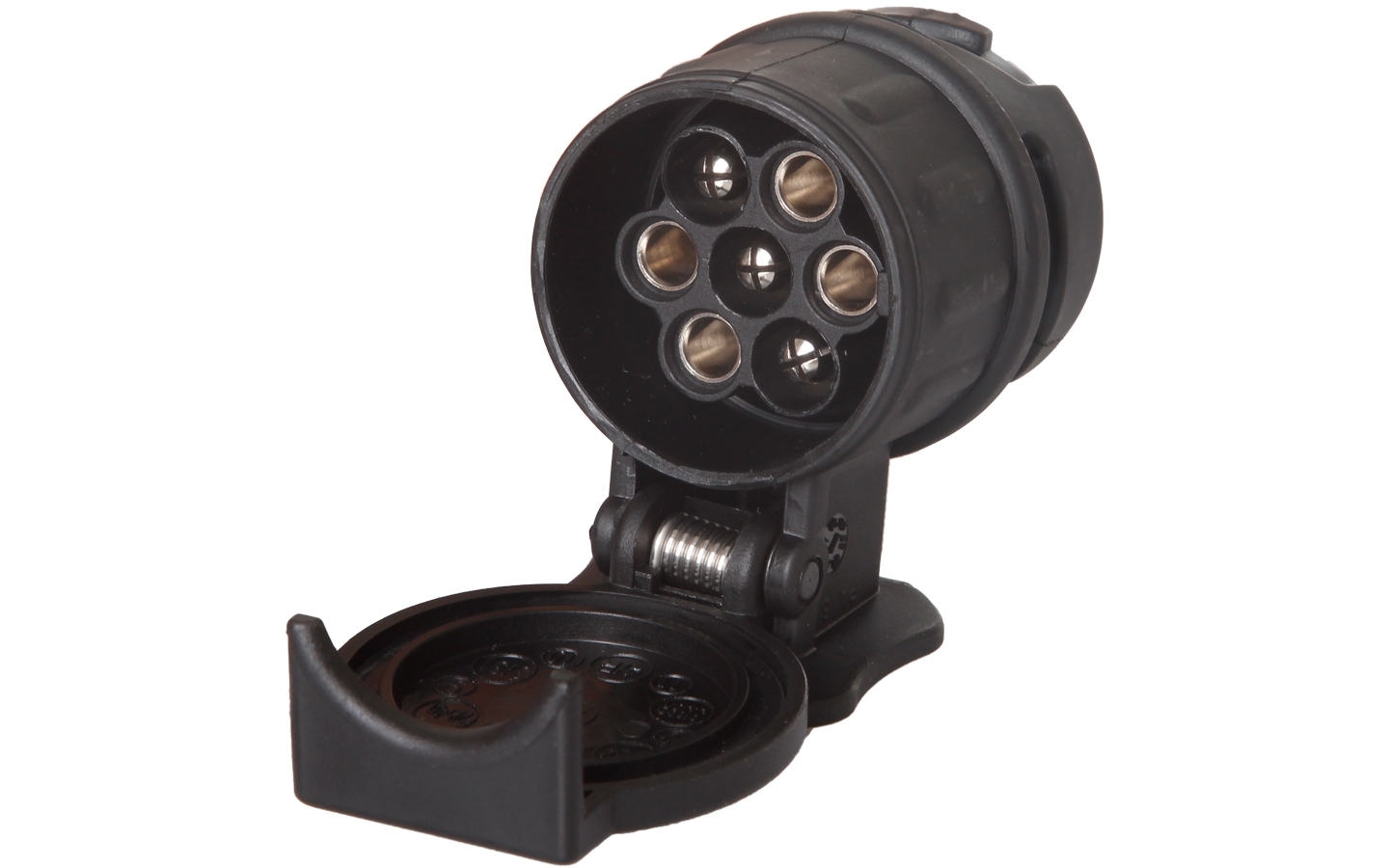 Adapter from 13 pole plug (vehicle) to 7 pole socket (trailer).
