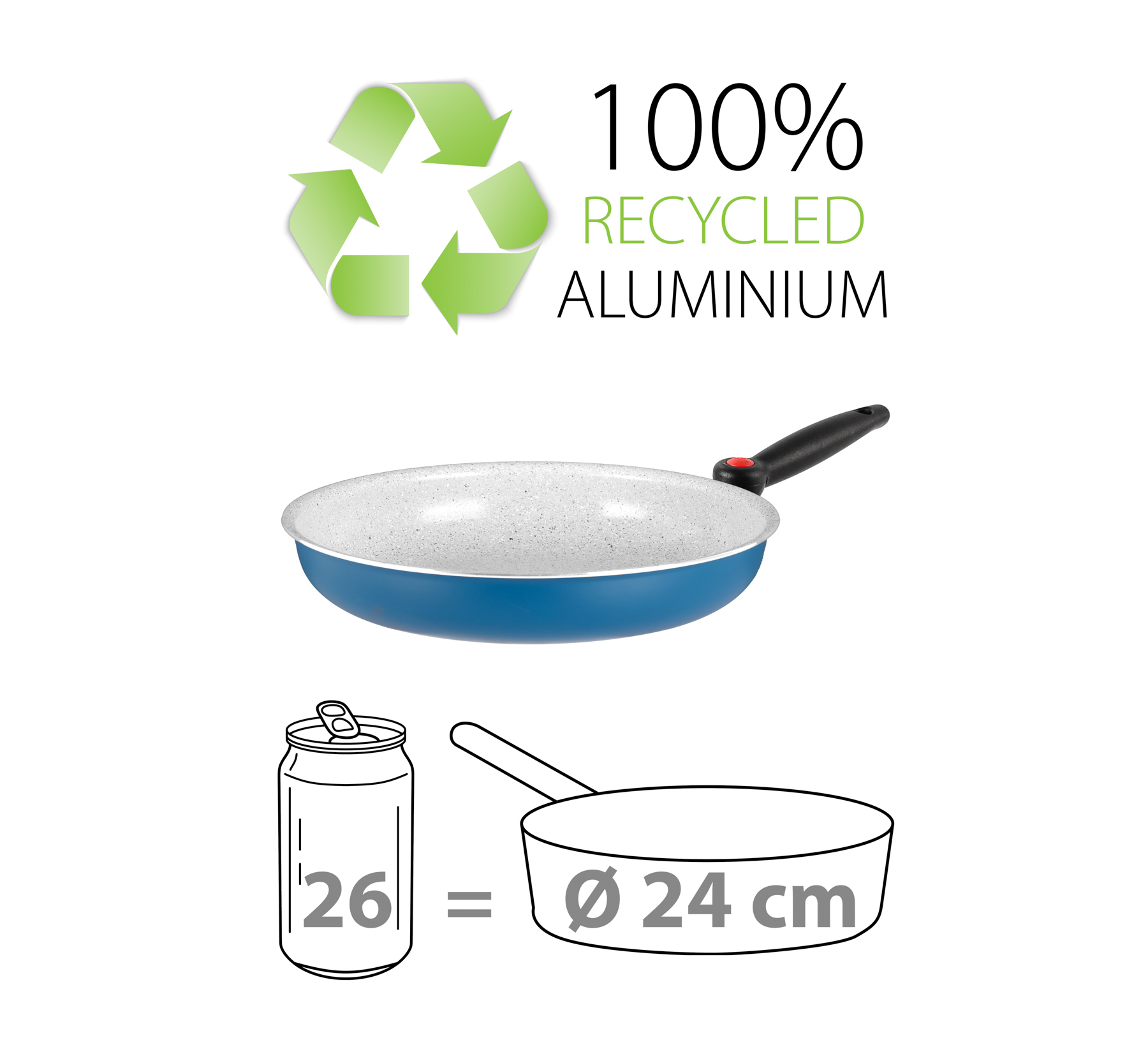 Carezza pans are made of 100% recycled aluminium and feature a high-quality ceramic coating. They cook exceptionally well and are easy to clean. The innovative folding handle maximises storage space, while universal compatibility guarantees trouble-free use on all types of hobs, including induction hobs.