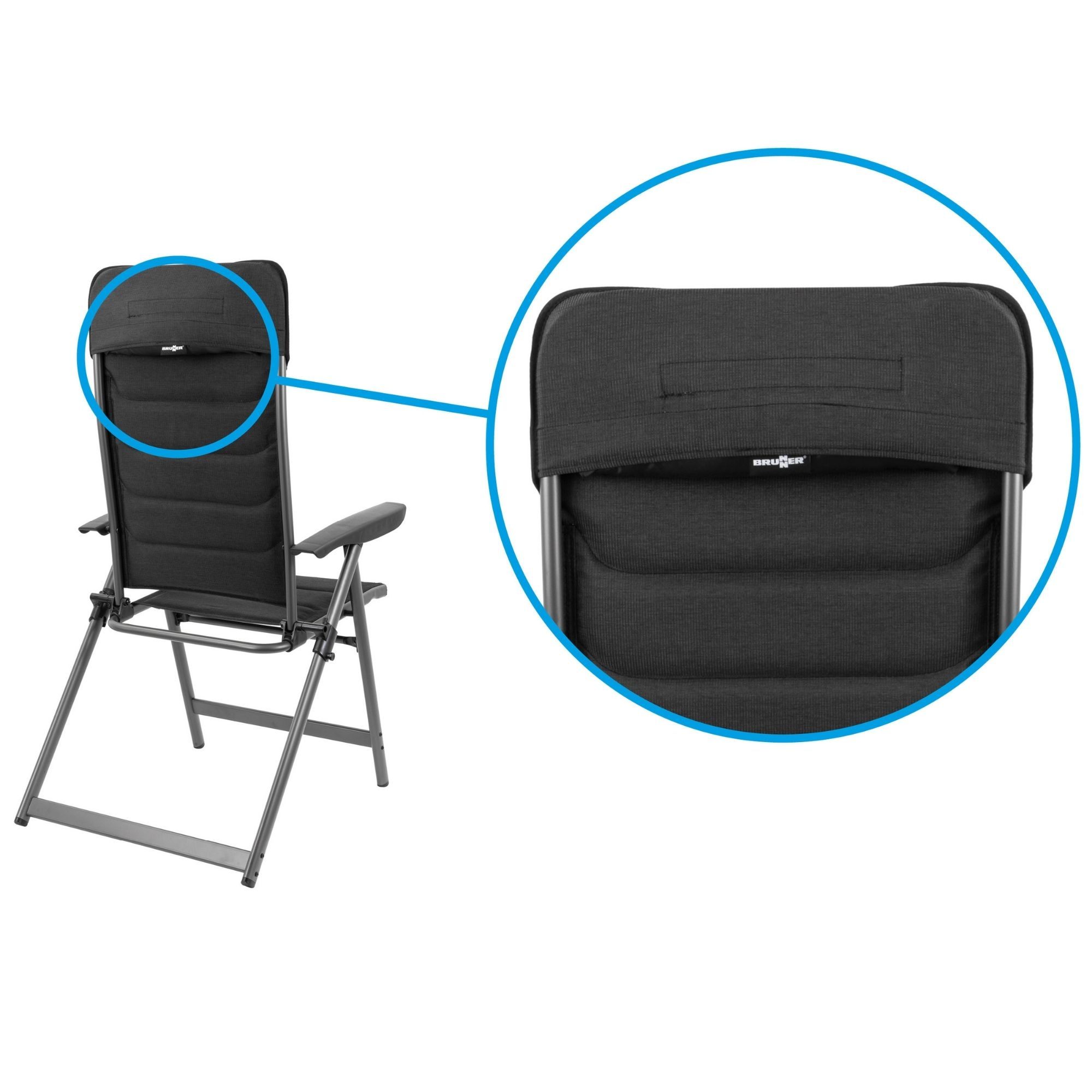 Ultra flat folding chair with adjustable backrest.