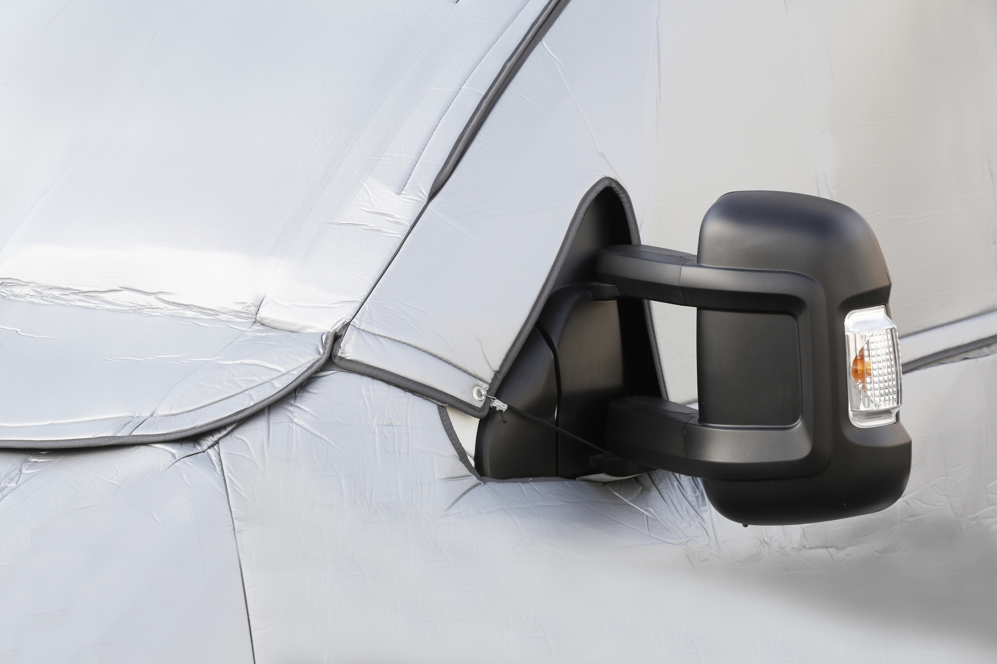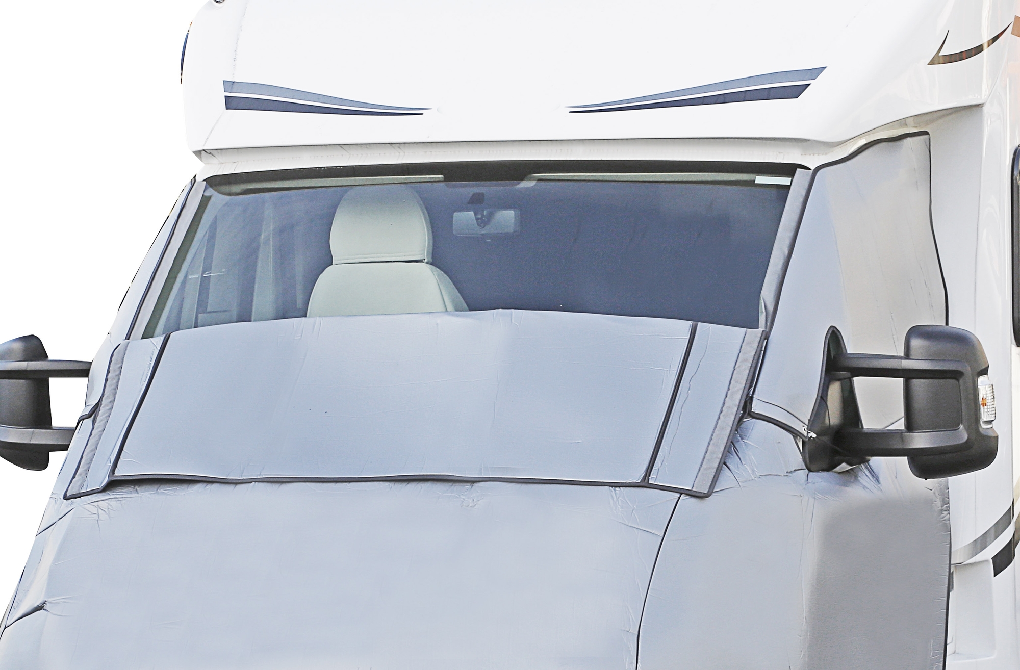 Dividable 2-part insulating mat for the driver’s cabin. Windscreen and engine hood can be covered simultaneously or not depending on the season. Made of a multi-layered insulating material. With special flaps.