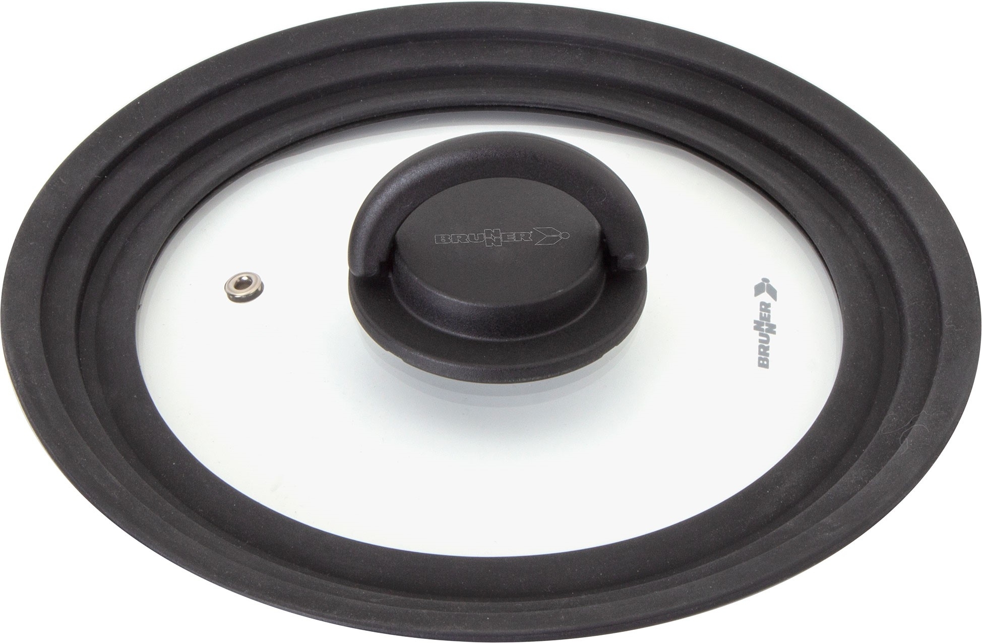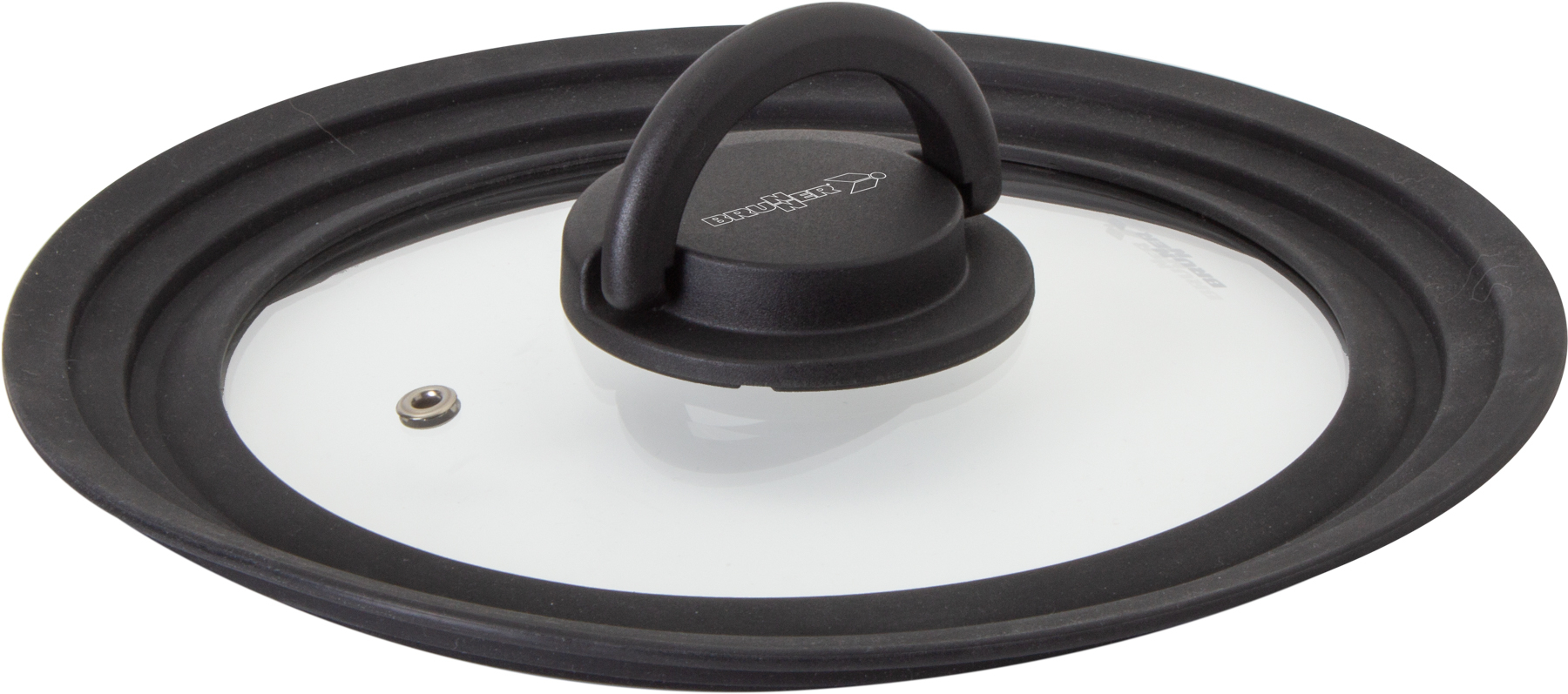 Universal glass lid with graded silicone edge suitable for pots and pans with different diameters.