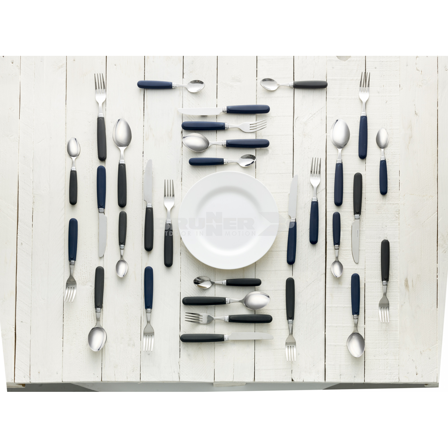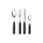 Cutlery set made of non rust stainless steel and antislip handles. The 16-pieces set consists of four forks, four knives, four spoons and four teaspoons. Washable by machine.