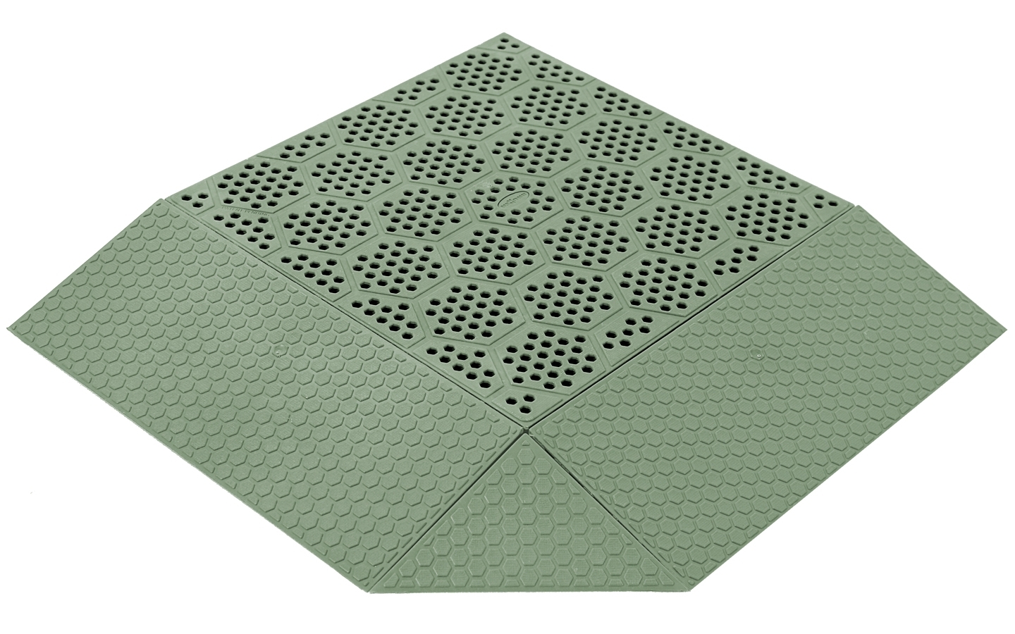 Corner piece for Deck-Fit floor tiles. Available in grey and green