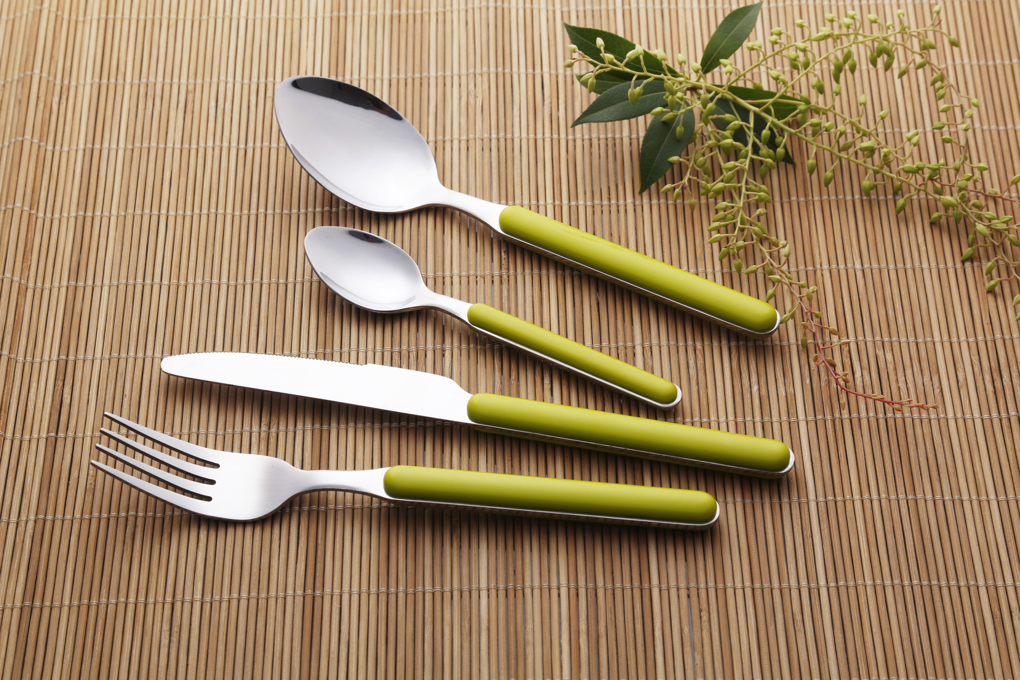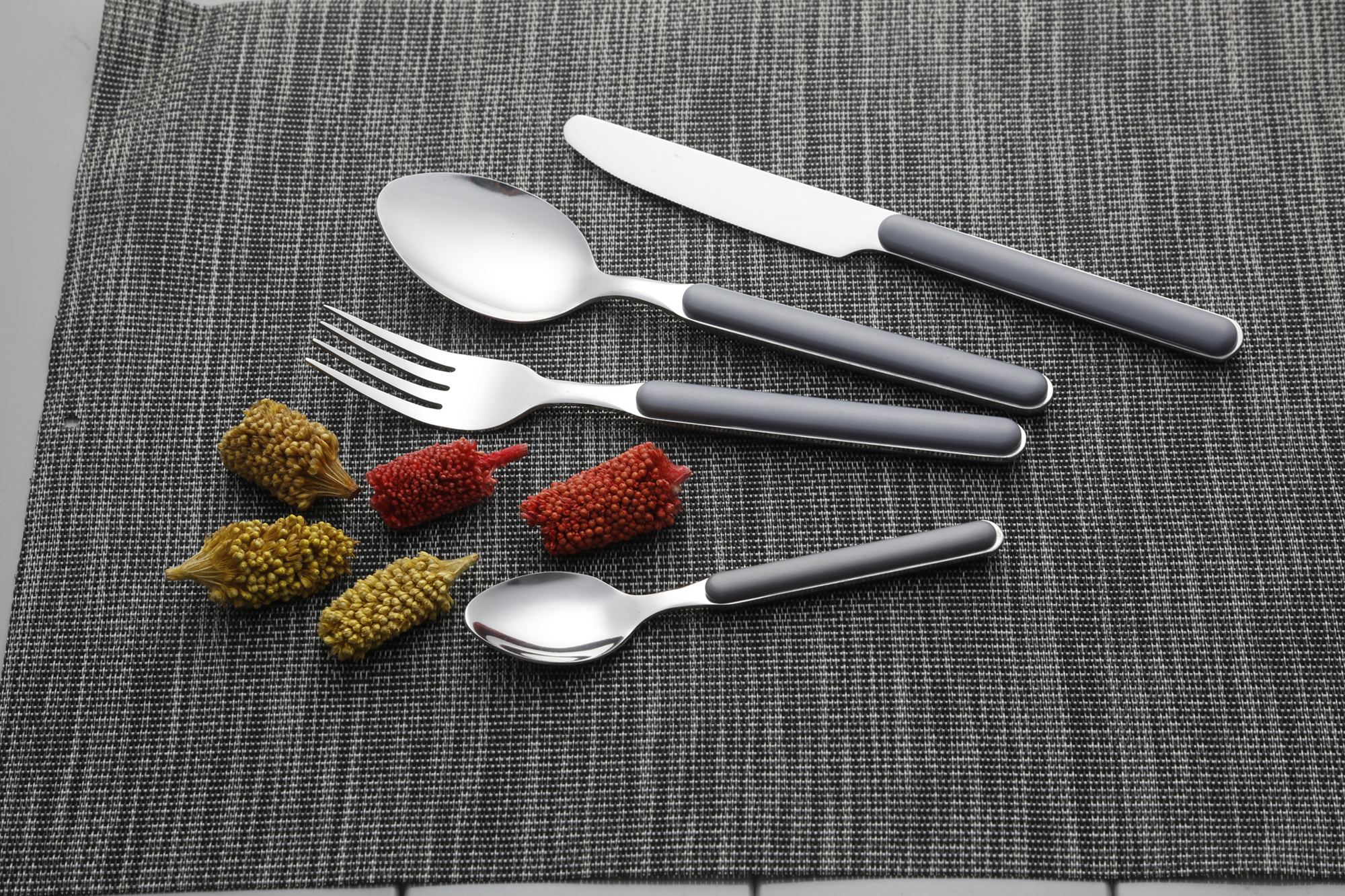 The cutlery features elegantly shaped handles that offer: