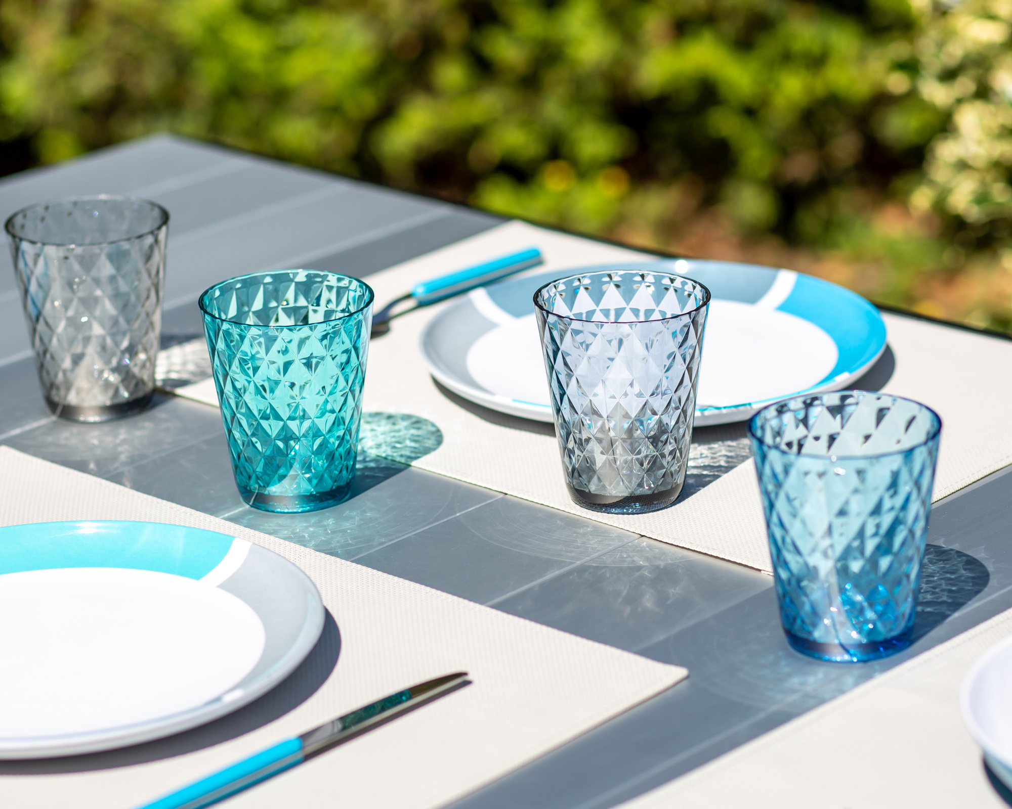 The Diamond DrinkingGlass Set combines timeless elegance with modern functionality. Designed with a vintage aesthetic, this set of 4 polycarbonate glasses is perfect for enhancing any dining setting, whether indoors or outdoors.