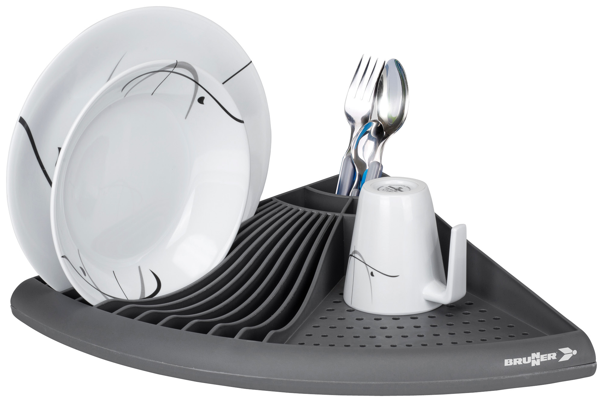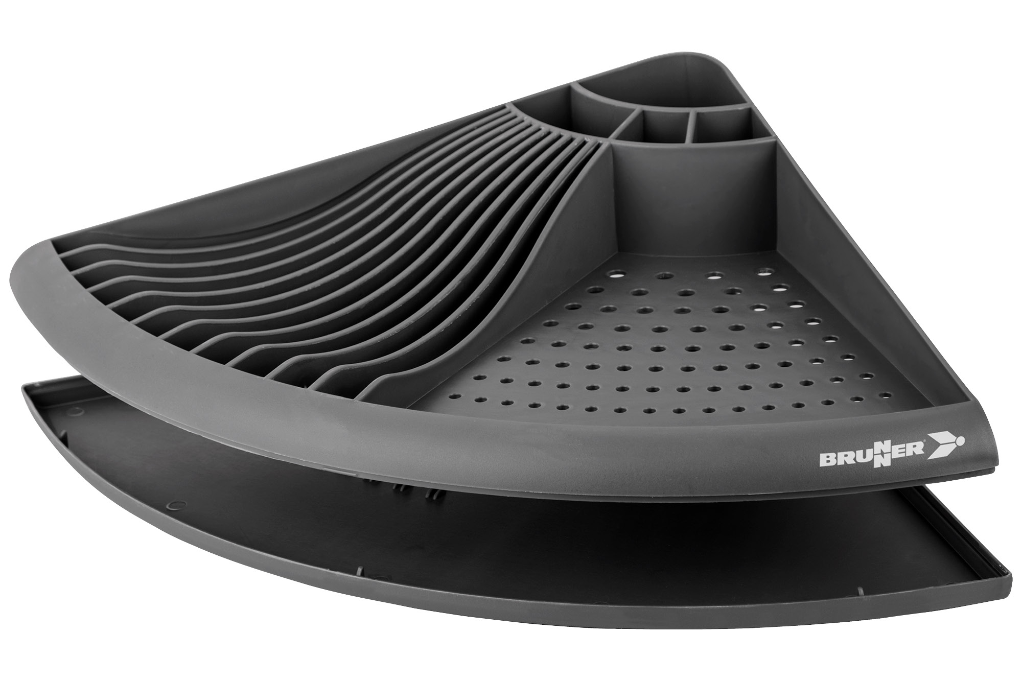 Triangular dish drainer consisting of 2 parts. Made of durable thermoplastic material. Ideal for use in limited spaces.