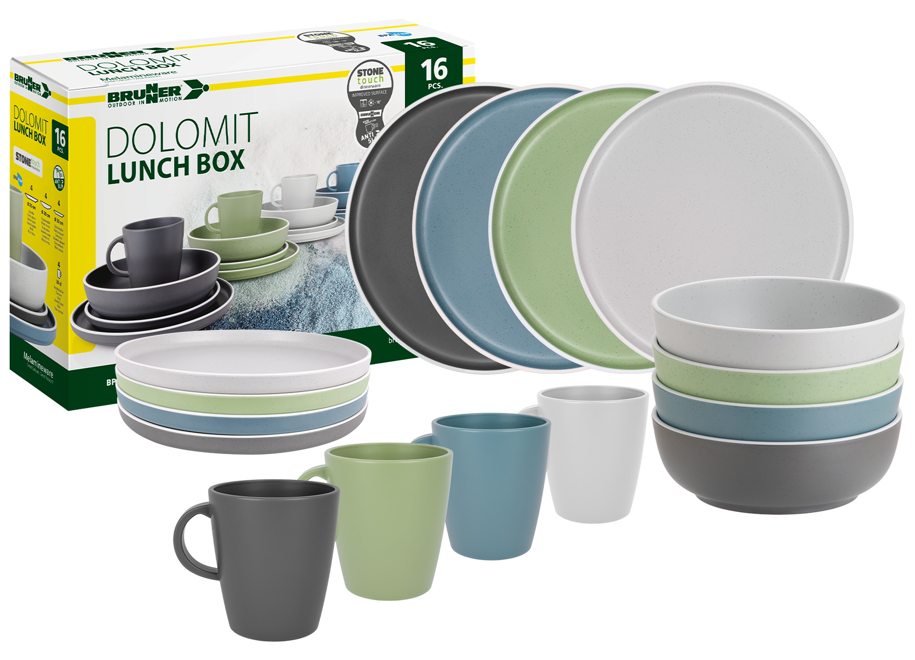 Upgrade your outdoor dining setup with the Dolomit 16-piece melamine dinnerware set – lunch box—a perfect fusion of style, durability, and practicality.