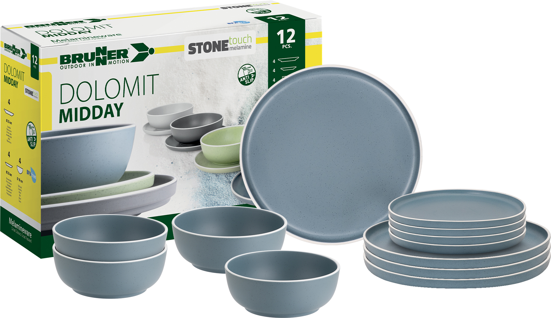 Dolomit 12-piece melamine dinnerware set - midday