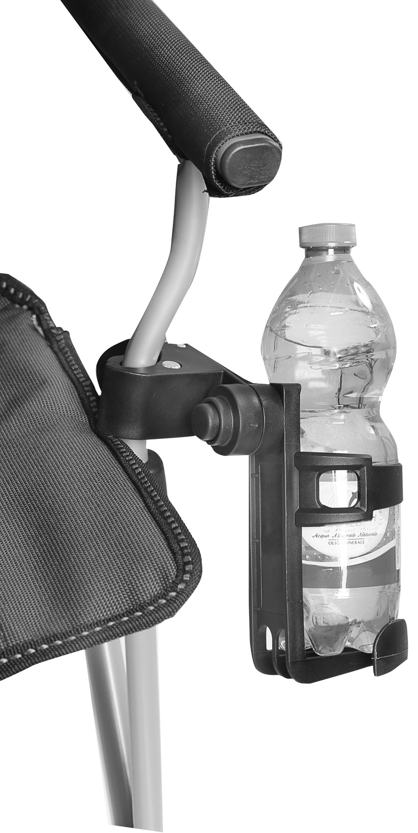 The Cancage cup holder ensures a secure grip of beverage cans and bottles at most outdoor, camping and garden chairs. The quick assembly system with angular adjustment allows an individual positioning of the holder.
