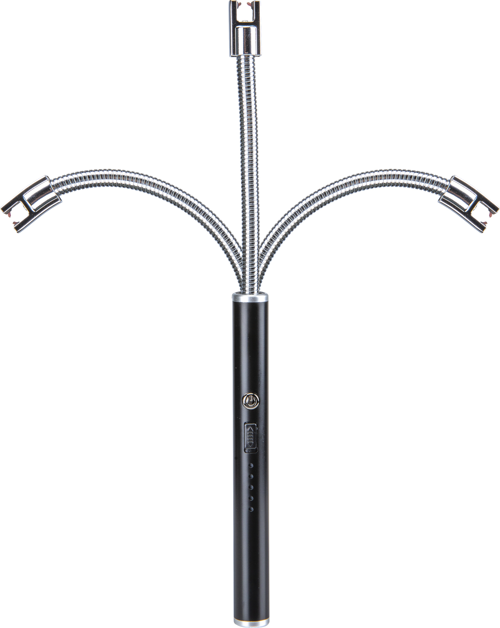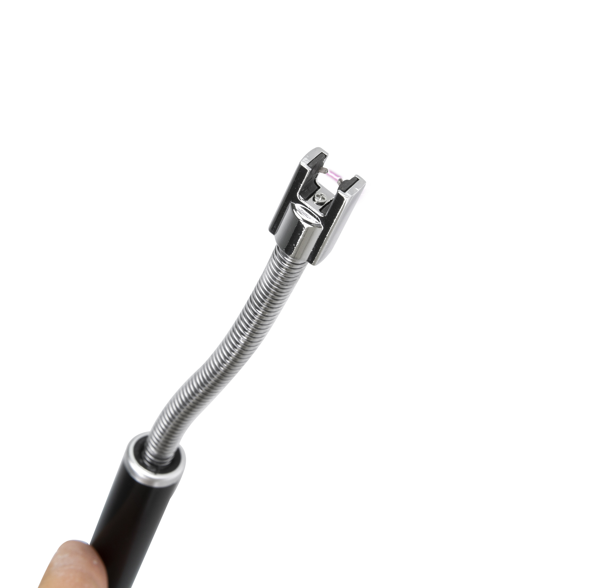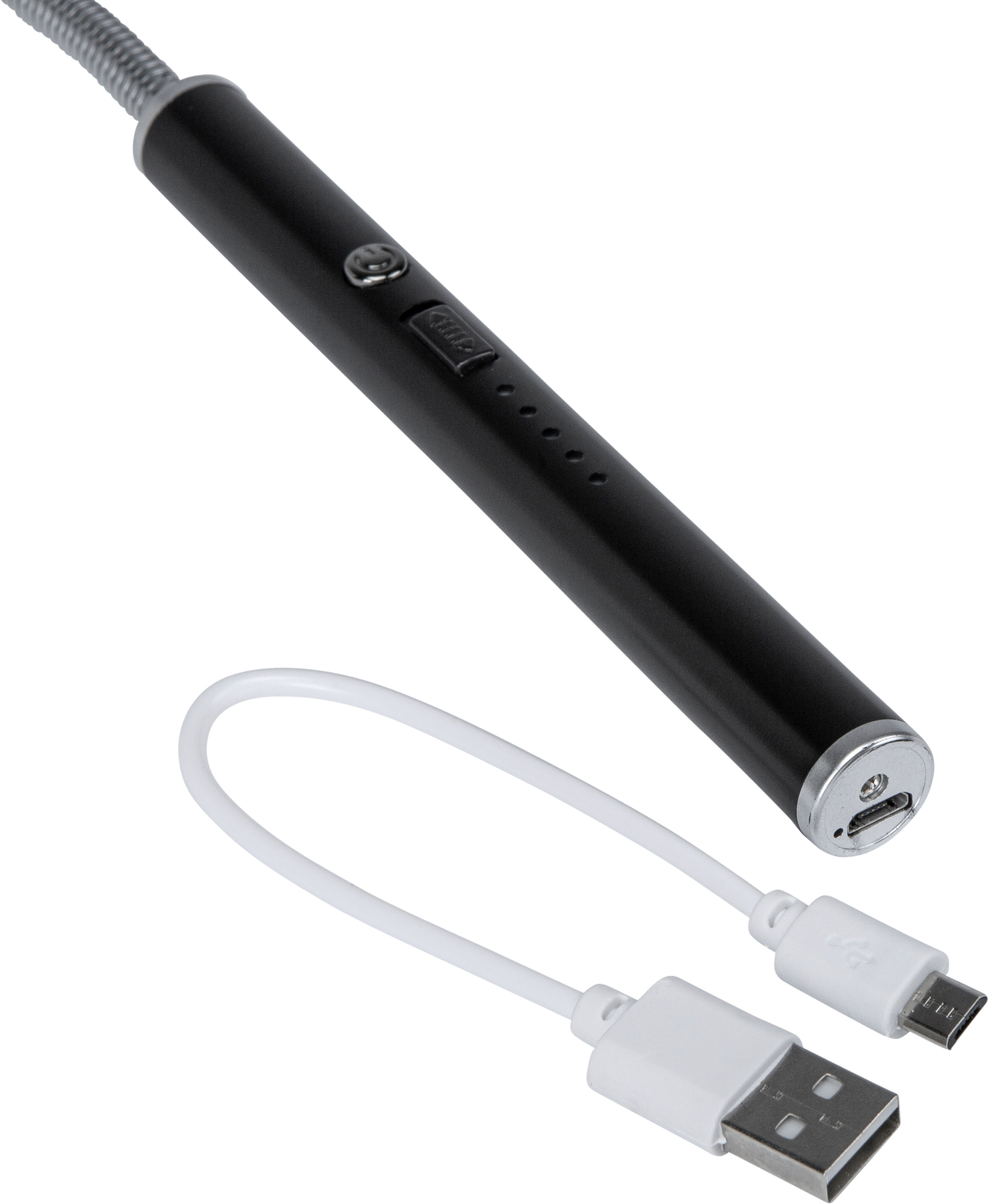 USB rechargeable lighter with flexible arm and integrated switch. The practical, safe and sustainable solution for lighting gas cookers and grills. Metal body. Complete with micro-USB charging cable.