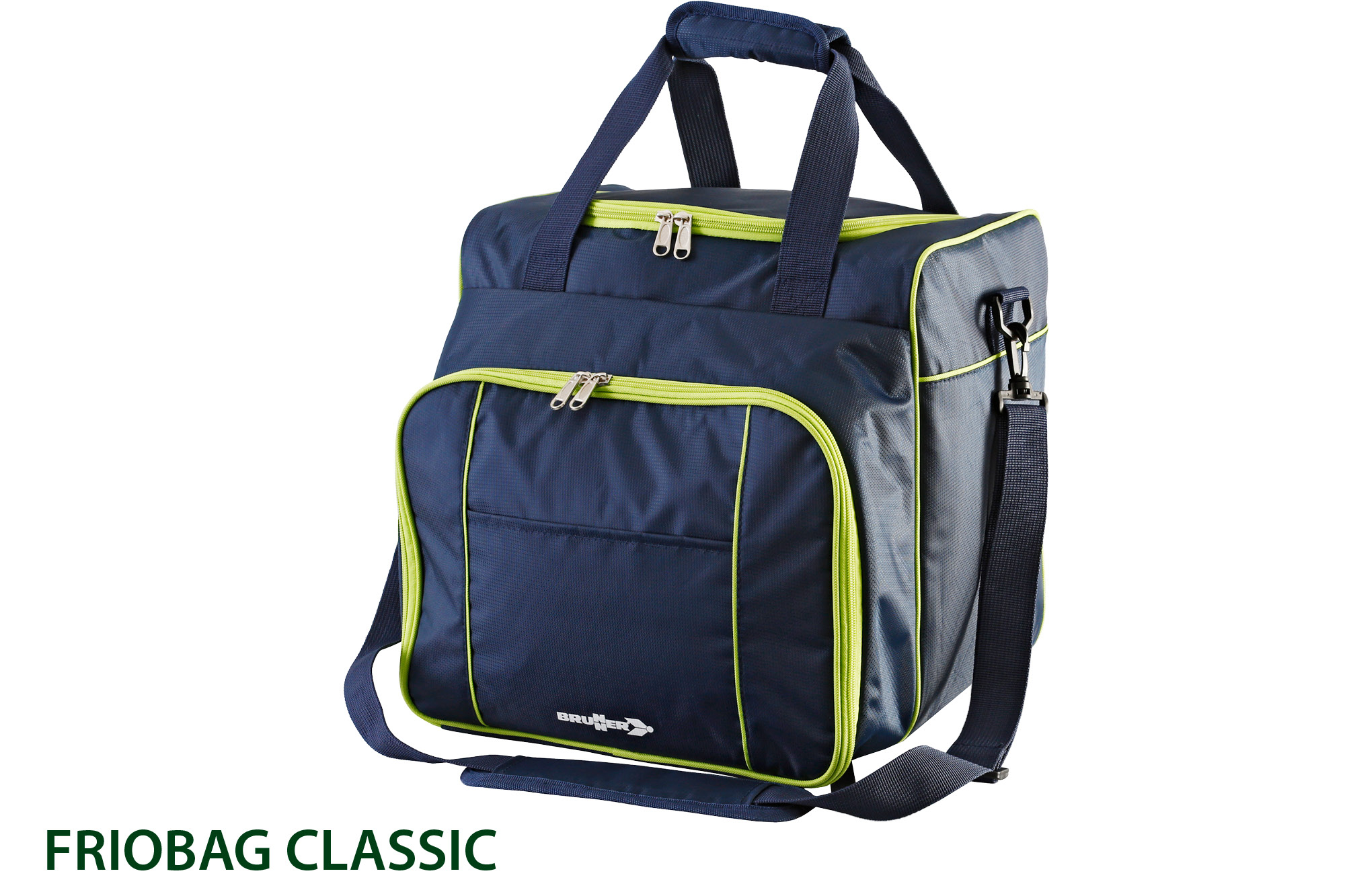 FRIOBAG CLASSIC: Classic large volume cooler bag with plenty of space for food and drinks. Large main compartment with zippered cover. Easy transportable due to its carrying handles and shoulder strap.