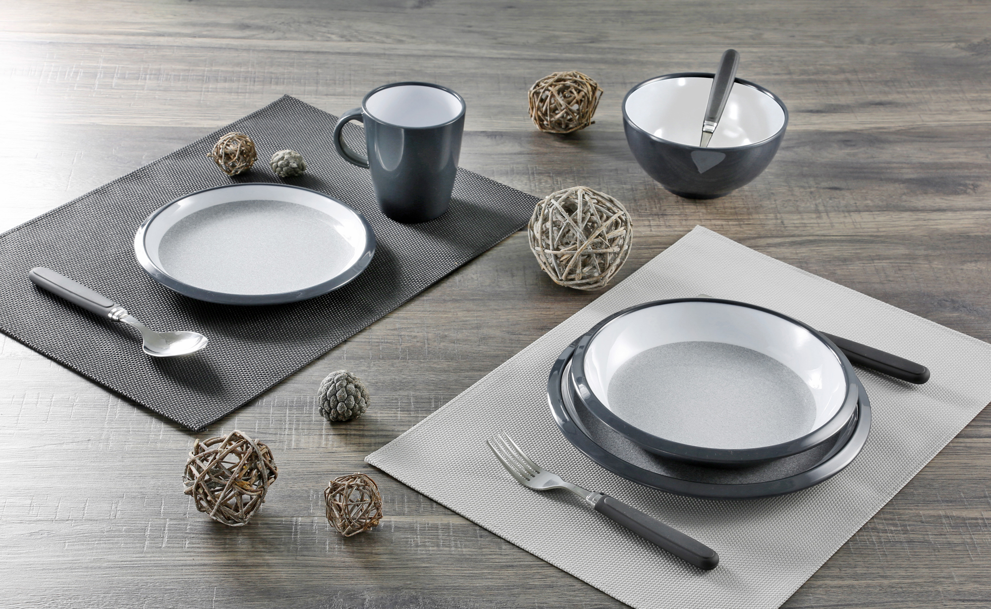 Dolomit 12-piece melamine dinnerware set - midday