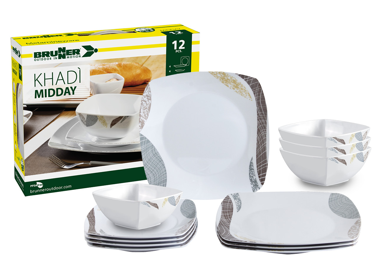 Dolomit 12-piece melamine dinnerware set - midday
