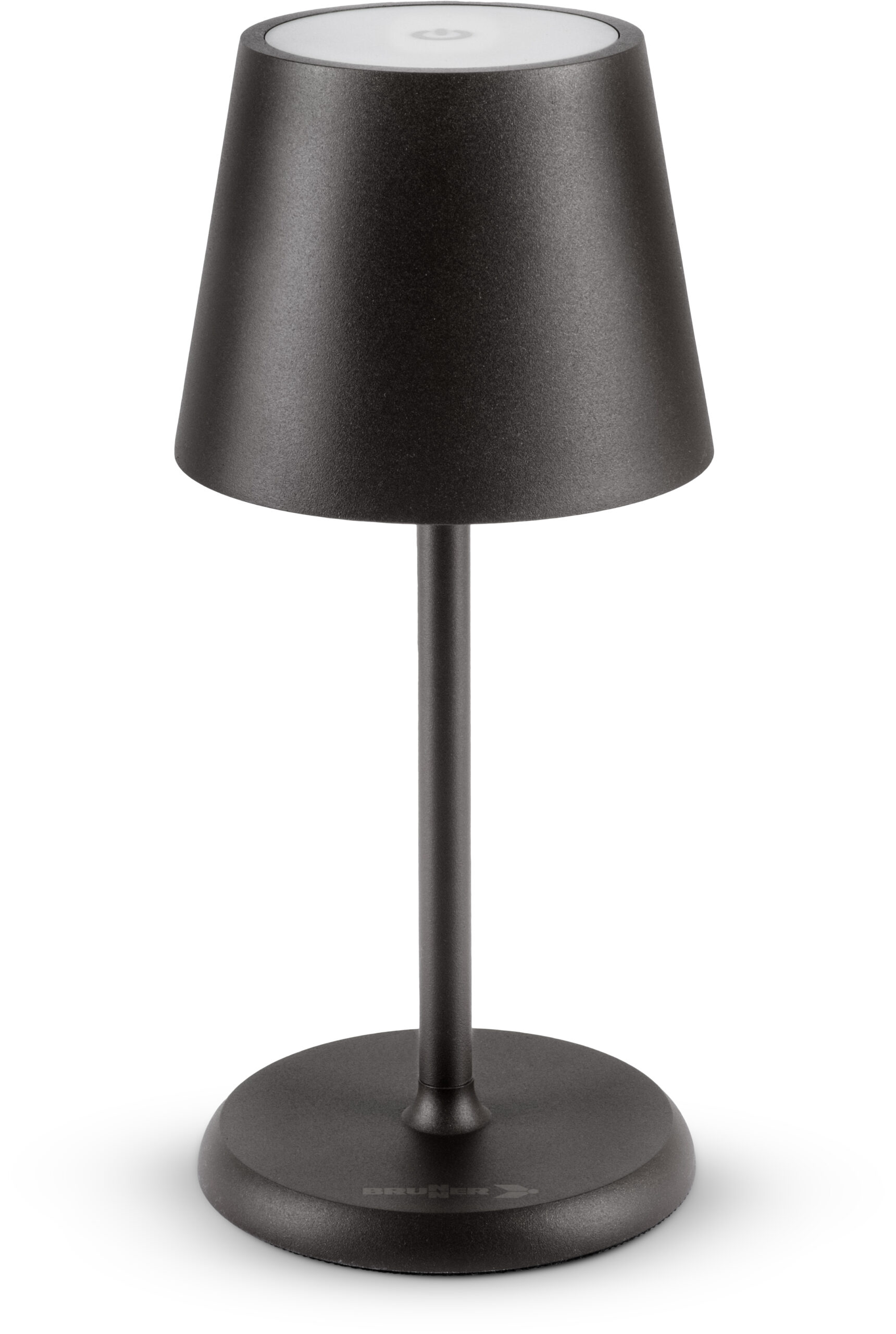 Rechargeable outdoor table lantern with a modern design and professional appearance. It provides pleasant light thanks to warm white LED illumination. Equipped with light intensity control and an elegant metal shade. The integrated lithium-ion battery can be recharged at any time via the supplied USB cable.
