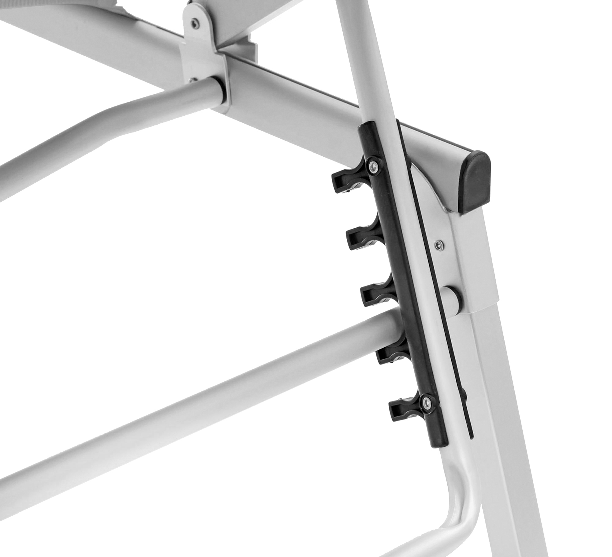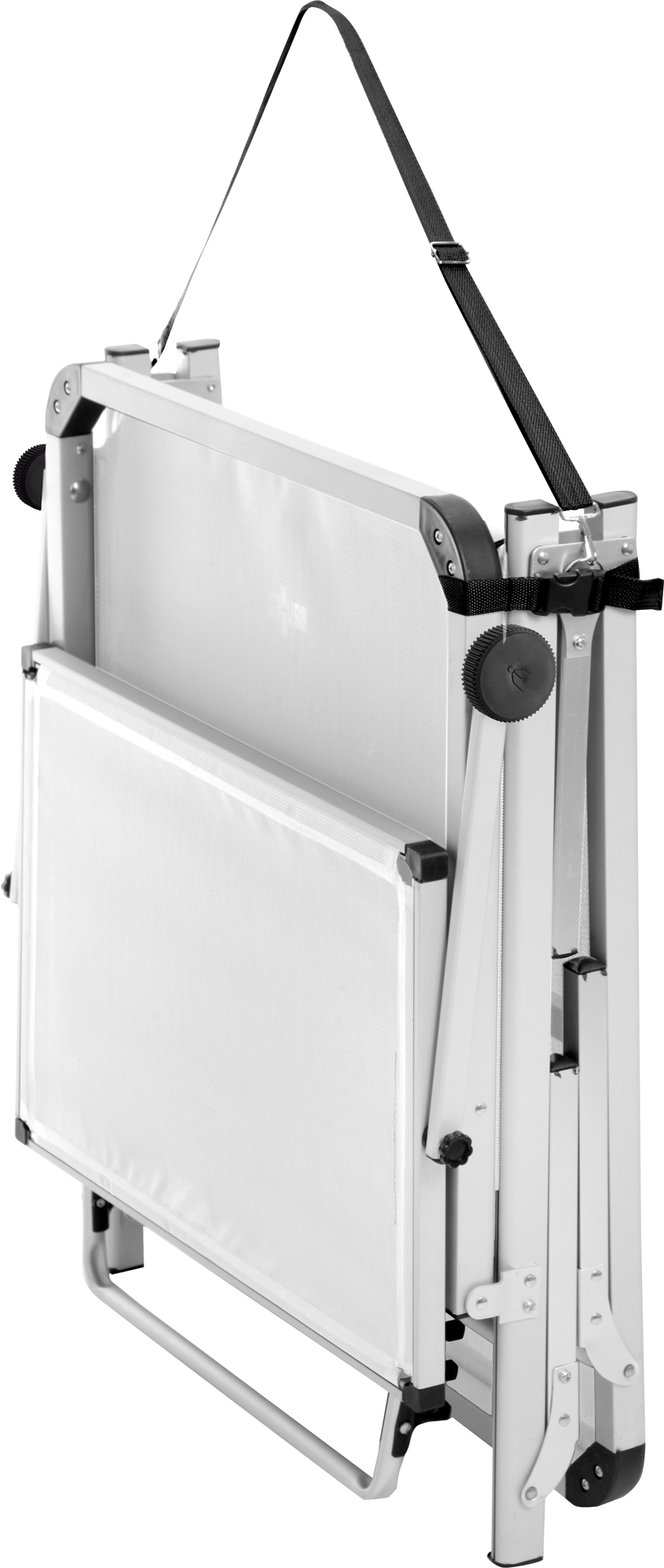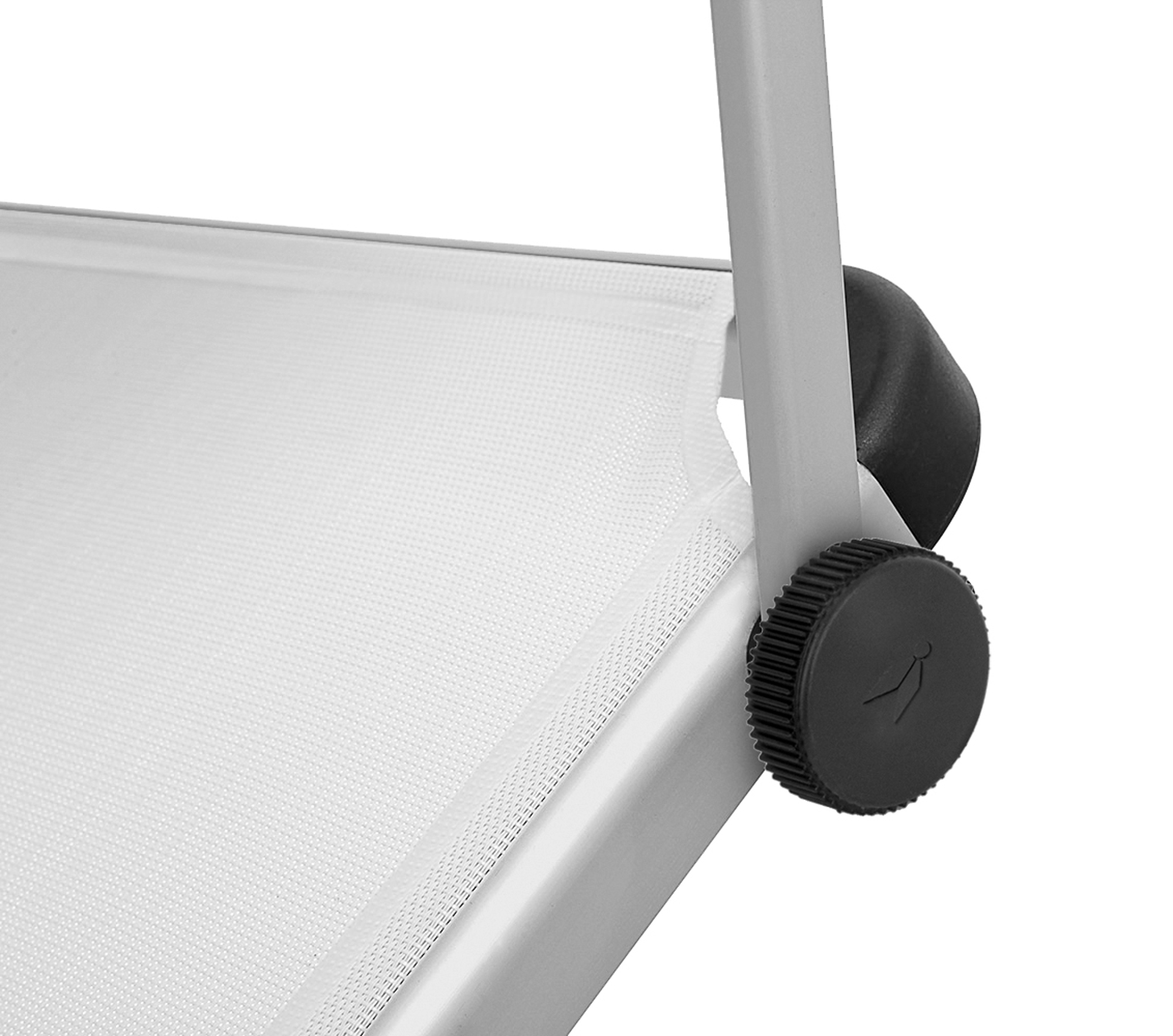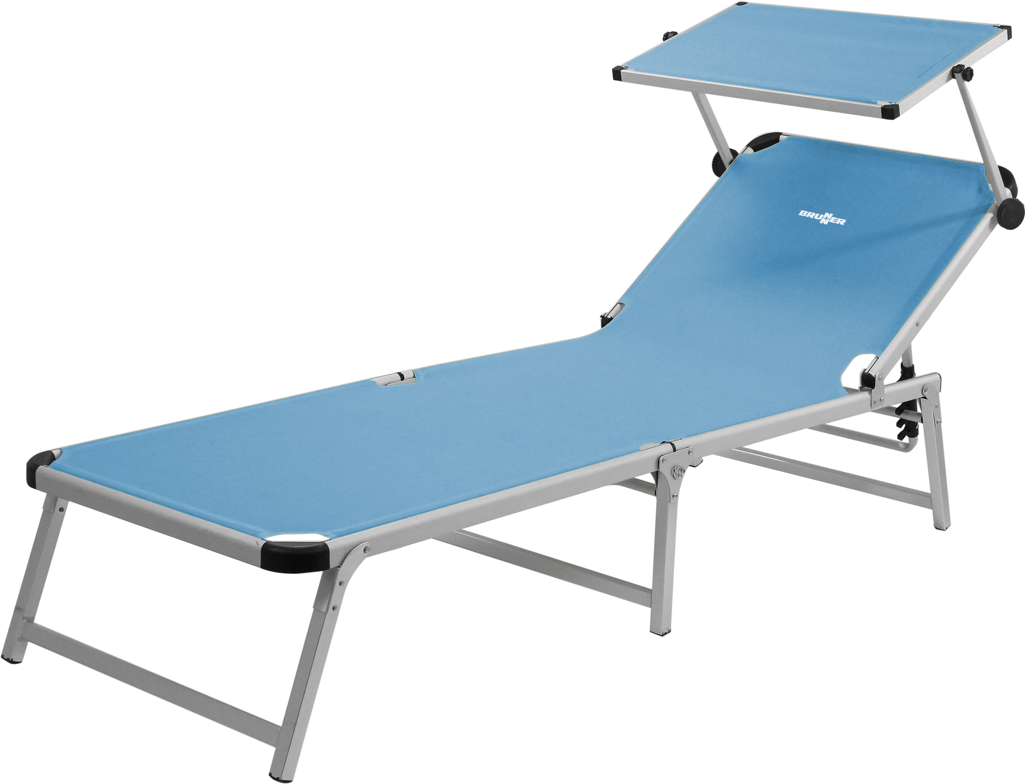 High quality sunbed with square shaped frame and three foldable legs made of anodized aluminium. The sunroof is adjustable.