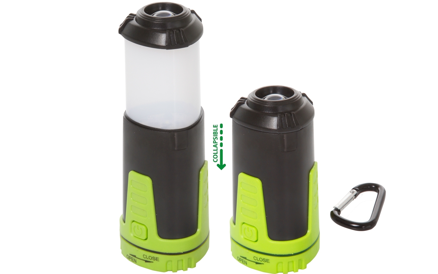 LED lantern with ABS body. Also features ON/OFF switch with flash mode, hanging hook and magnet. Battery operated.