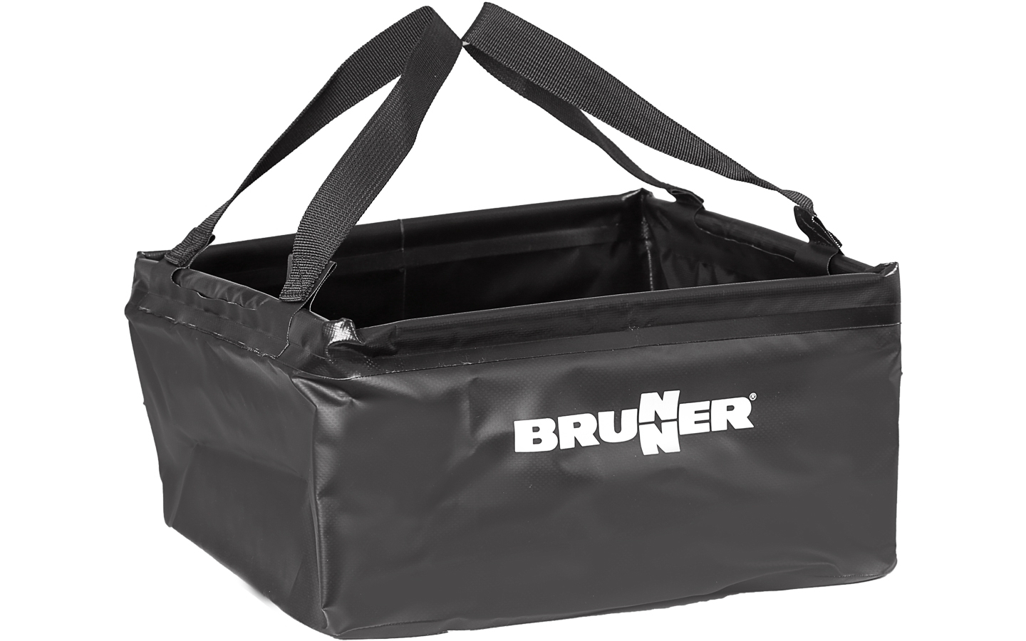 Folding bucket with reinforced edges. Made from water proof PVC coated polyester. All seams are welded. With handles.