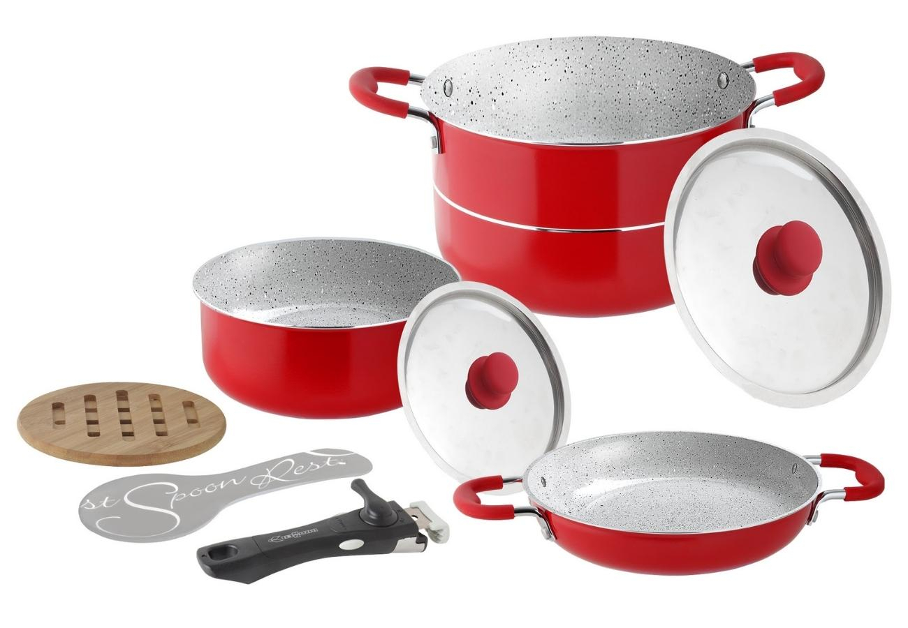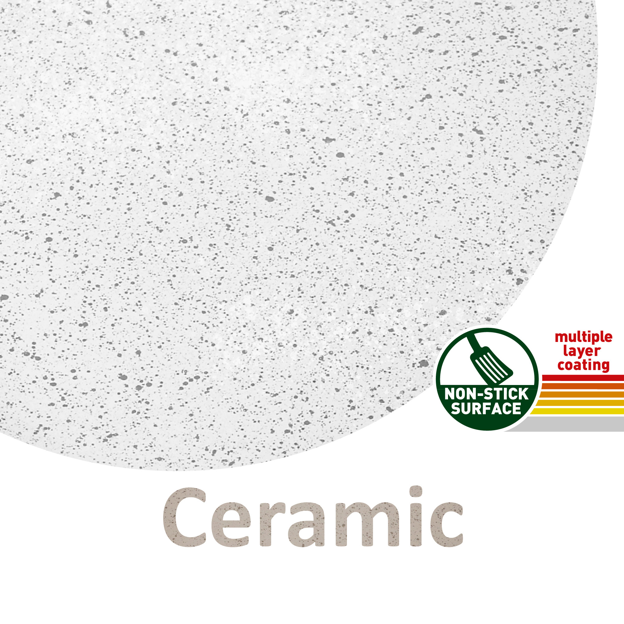 8+2-piece alu cooker set with non-stick ceramic coating. Scratch resistance. Silicone coated handles. Easy to clean.