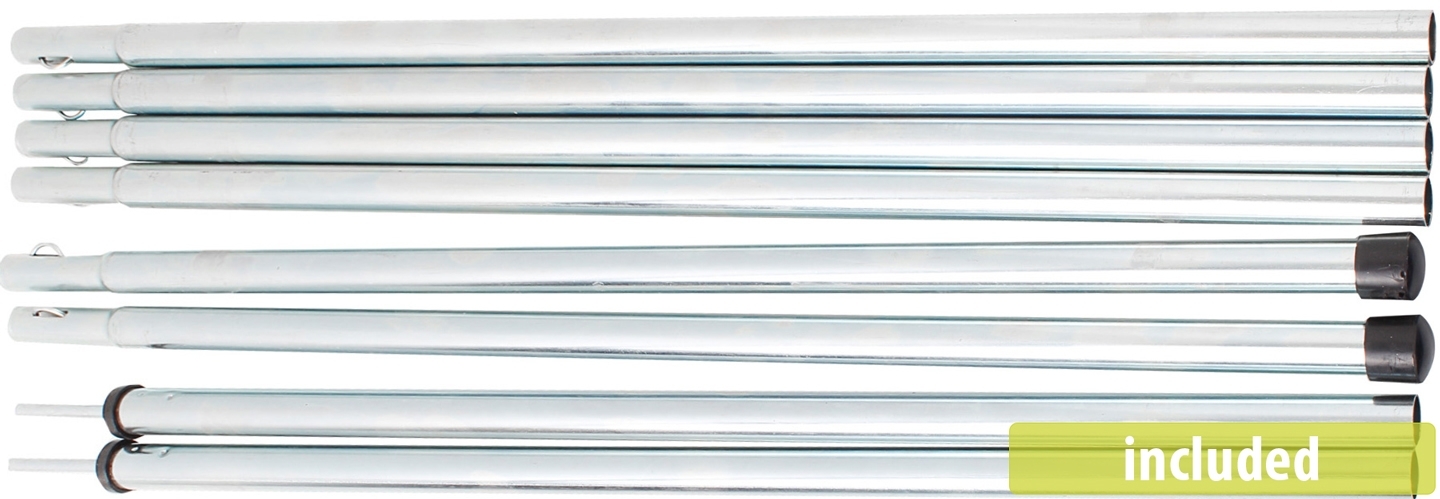 • Includes inner tent, flysheet with groundsheet, poles, vertical poles, connection pole, guy ropes, pegs, and carry bag