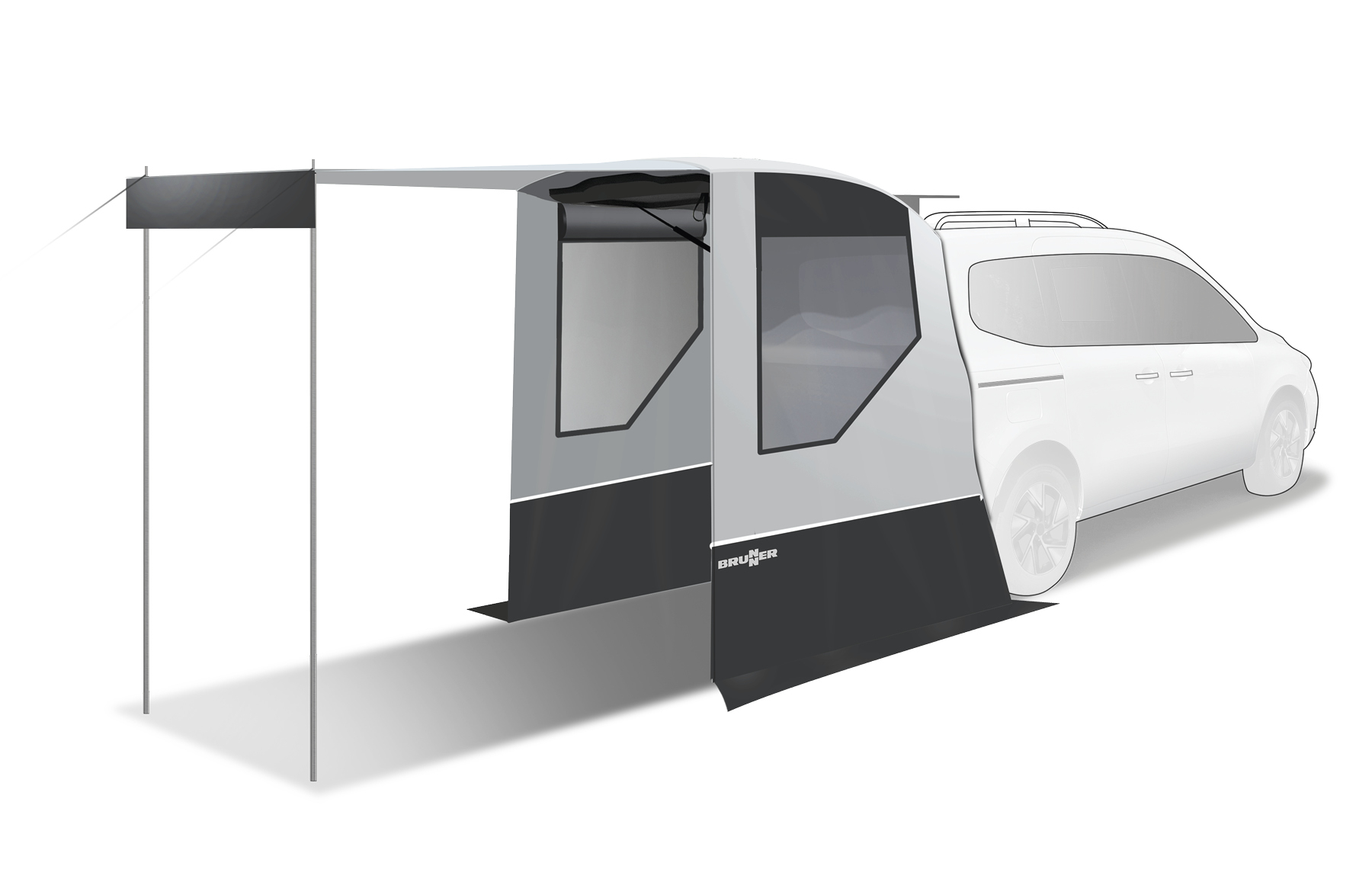 The Brunner Castor tailgate tent is the ideal solution for owners of the Mercedes Citan and the structurally identical Renault Kangoo and Nissan Townstar models who need extra space in the rear. With its easy assembly, frameless construction and extremely compact storage space, this tent is the perfect solution. Whether you want to store your gear, cook or even sleep, the Brunner Castor rear tent will create more space in no time. It offers you the opportunity to give your vehicle extra freedom of movement. Installing the tent is quick and easy, so you’ll be ready to enjoy the benefits of this practical accessory in no time. The high-quality material and professional workmanship ensure durability and a long service life.