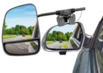 Universal towing mirror that fits almost all vehicles. Also suitable for vehicles with large original exterior mirrors. Large, aerodynamically shaped housing with adjustable additional mirror that displays the blind spot. Quick and easy to fit. Can be fixed with 2 safety clamps. Includes additional rubber fastening strap for optimum safety. Supplied in pairs. E11 compliant.