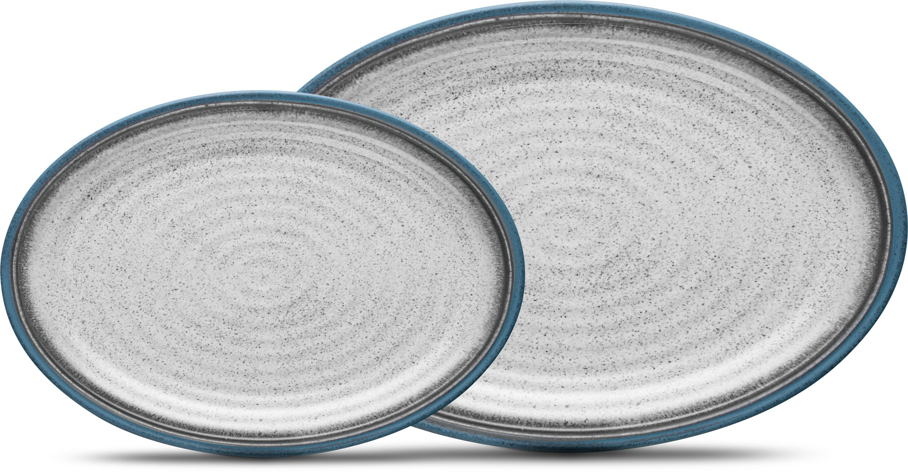 Oval serving and cold cuts plate set (2 pieces) made of Stonetouch melamine. With anti-slip ring. Stackable to save space. Packed in a beautiful gift box.
