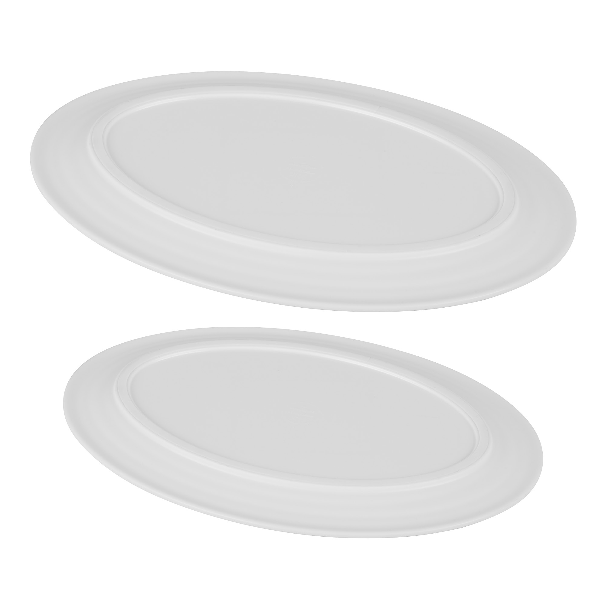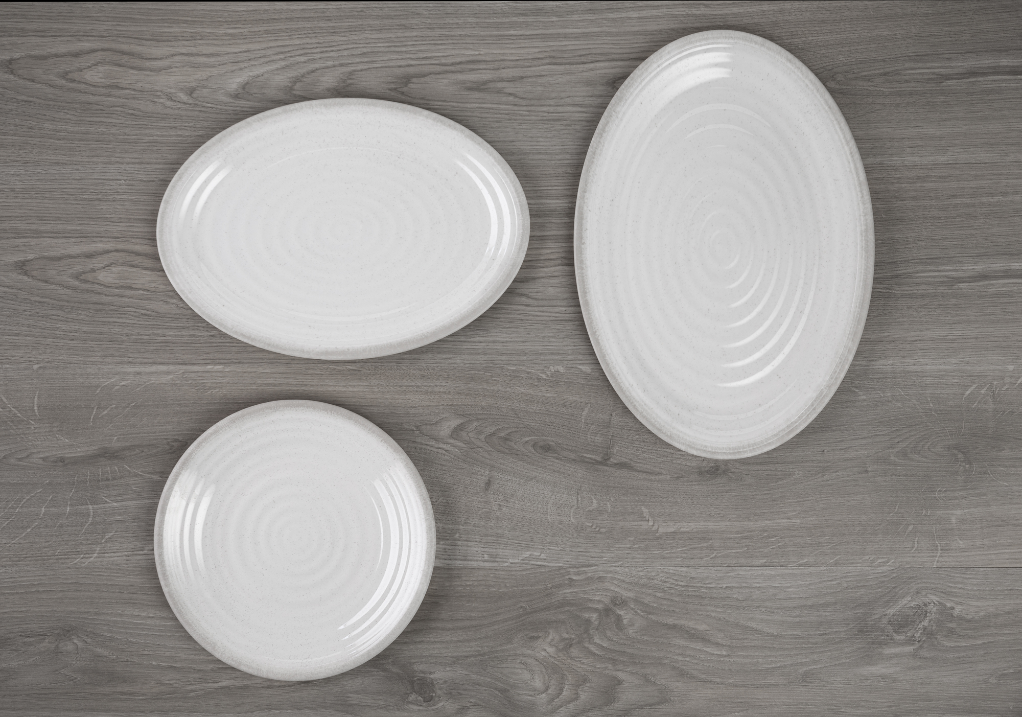Oval serving and cold cuts plate set (2 pieces) made of Stonetouch melamine. With anti-slip ring. Stackable to save space. Packed in a beautiful gift box.