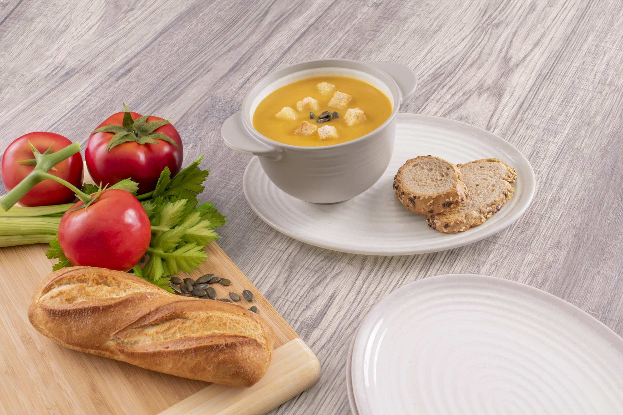 Elegant bouillon bowl for the classic hors d’oeuvre soups, clear broths and consommés, as well as for all main course soups. This high quality Stonetouch melamine dish keeps the temperature high for a long time and guarantees a maximum soup experience. With matching saucer.