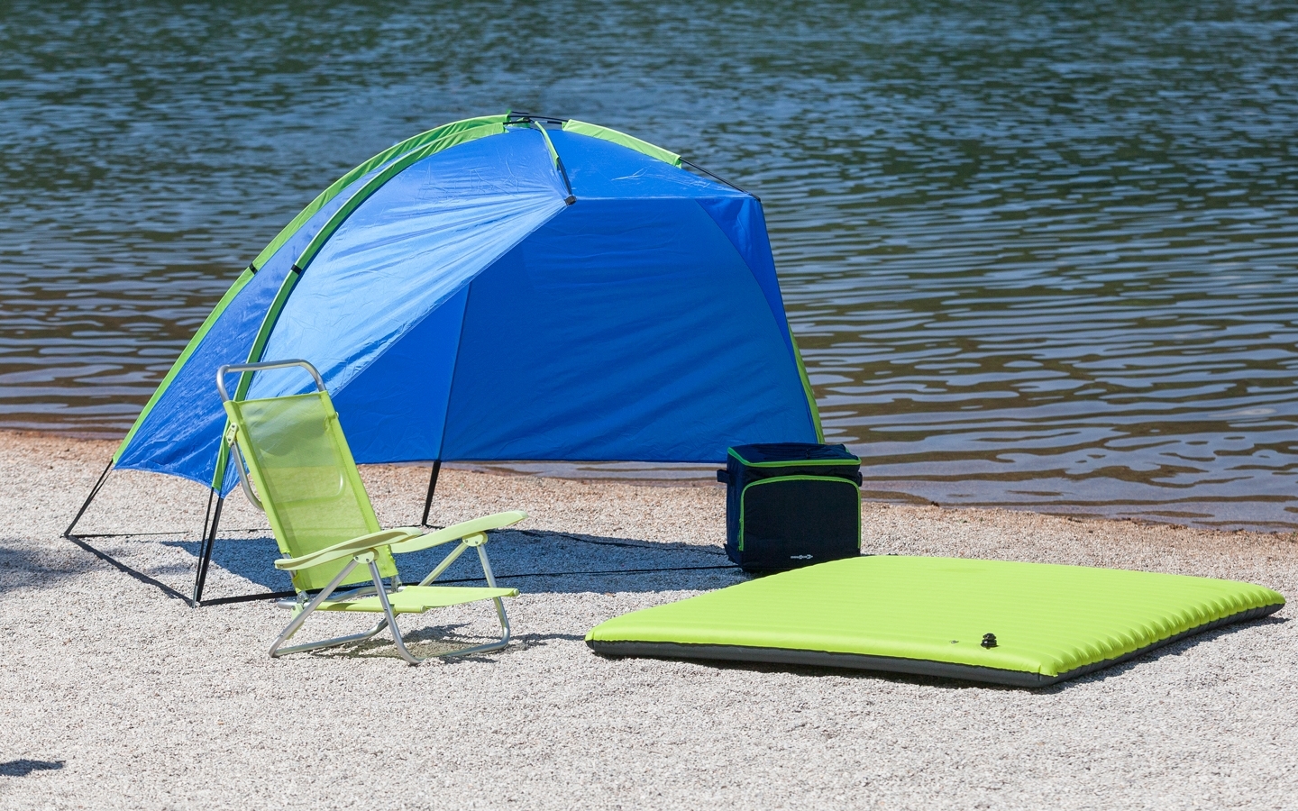 Ideal for the trip to the beach, beside the swimming pool or in the garden, this portable canopy makes a perfect companion for an effective sun protection. Its innovative 3-pole design combines the benefits of a generously sized sunshell with those of a traditional parasol. The special construction allows for quick setup and takedown and comes with a convenient carry bag for easy mobility.