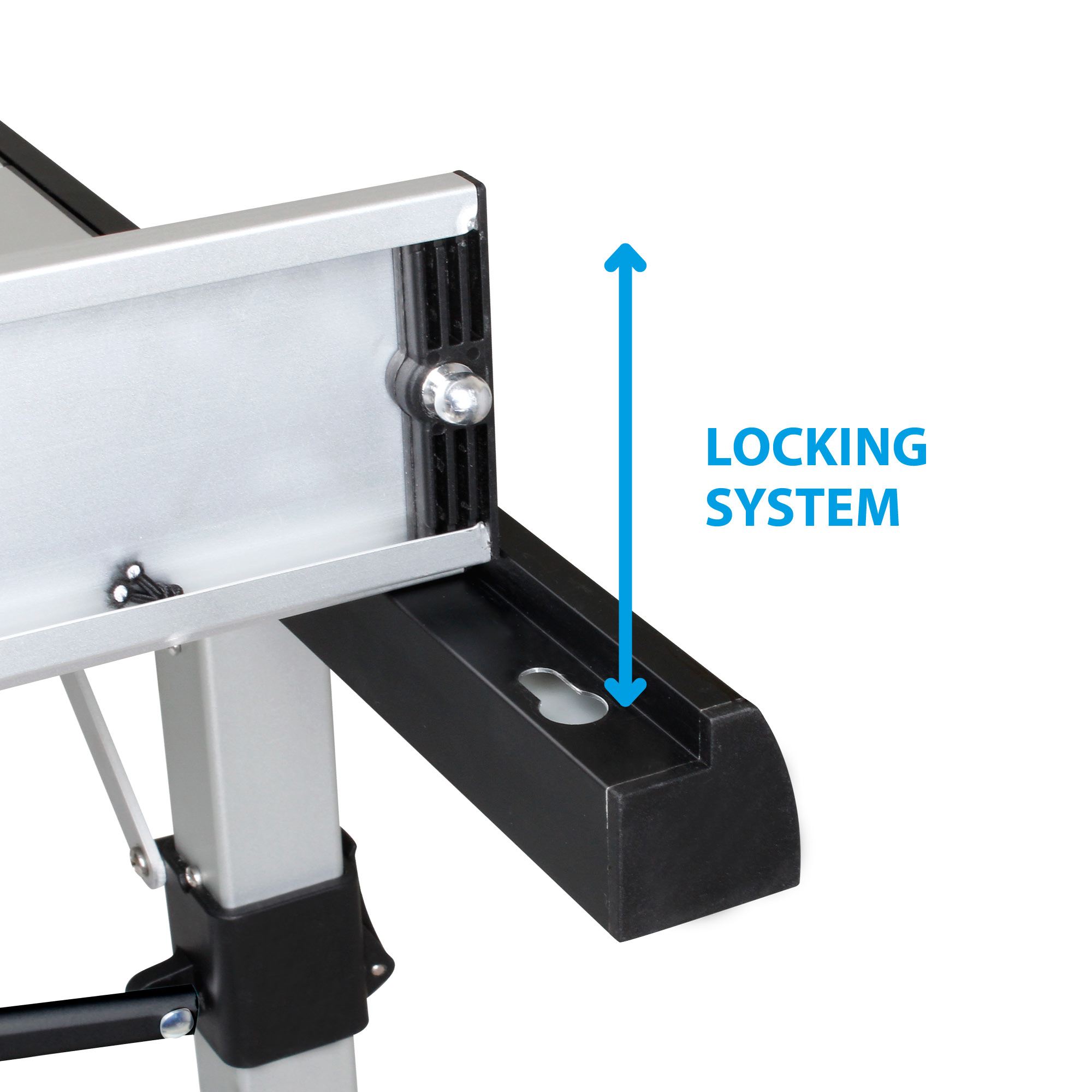 Equipped with a newly developed folding frame, this table is based on the classic construction with four vertical legs. The special quick-locking mechanism connects the tabletop to the frame, allowing for easy and quick setup. Unlike traditional folding tables with an X-frame, the Quadra 6 NG offers ample legroom on all four sides.