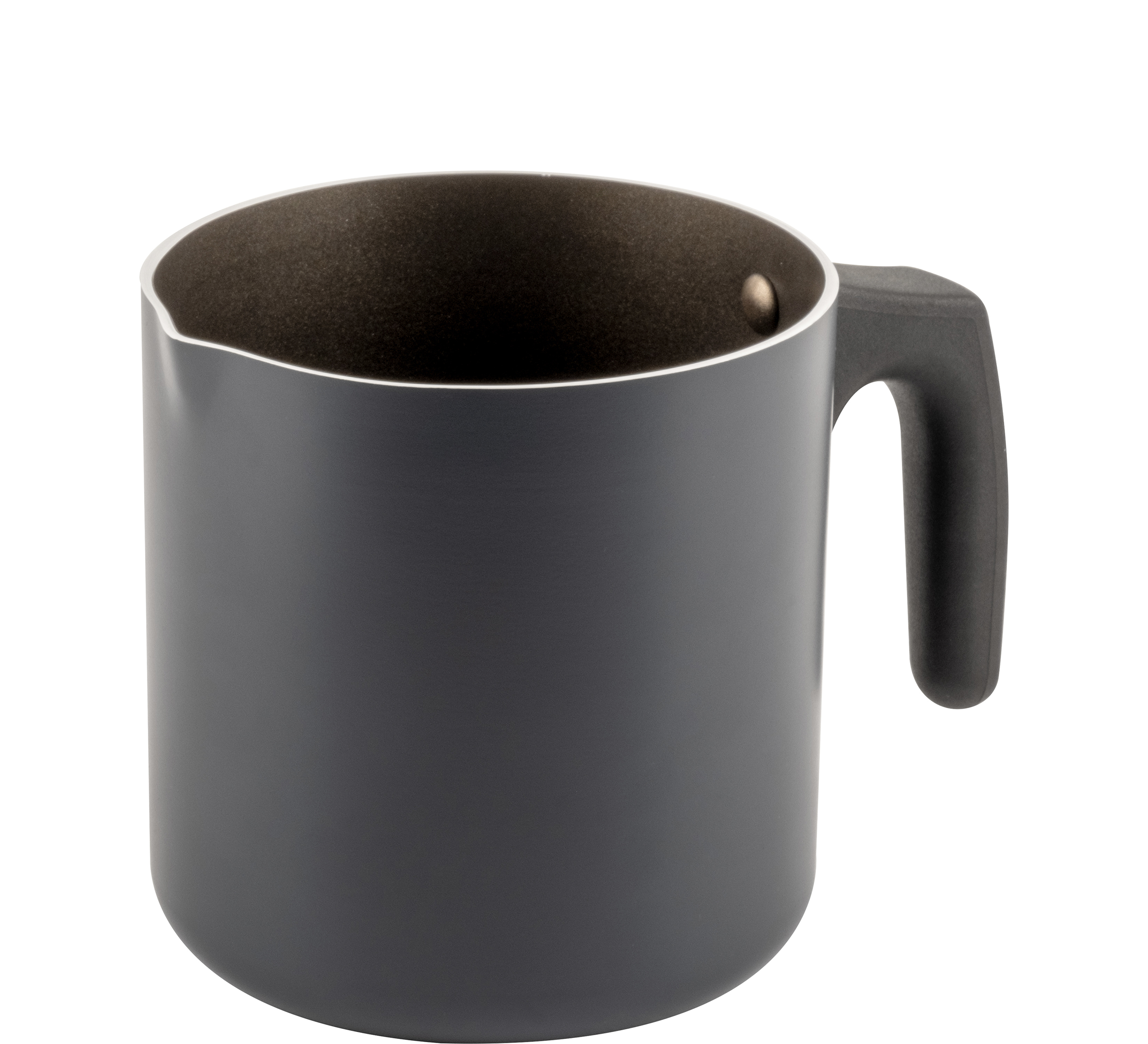 Aluminium milk kettle with heat-insulating handle. Sturdy body with non-stick inner coating. Ideal for heating and boiling milk. Dishwasher-safe.