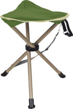 Folding tripod stool made of steel.