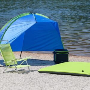 Modern, fast erecting beach shelter with room for 2-3 people. Perfect sun and wind protection on deserted beaches. Solid construction with sturdy fiberglass poles and convenient groundsheet. With mounting accessories and carry bag.