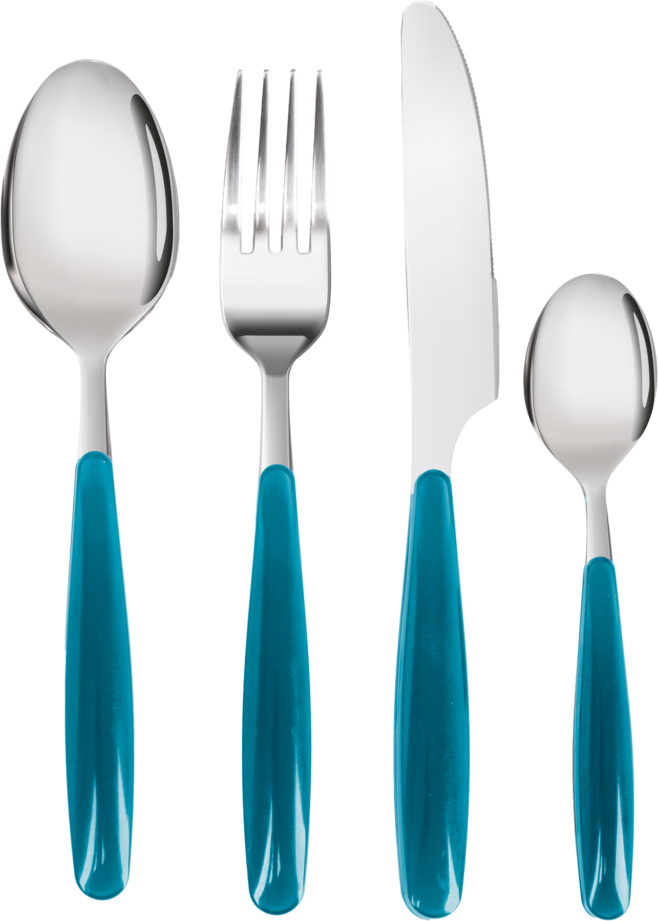 16-pieces cutlery set with strong stainless steel core and nicely shaped plastic grips.