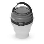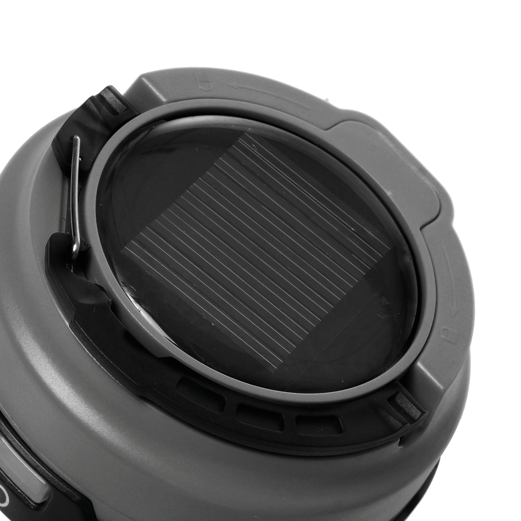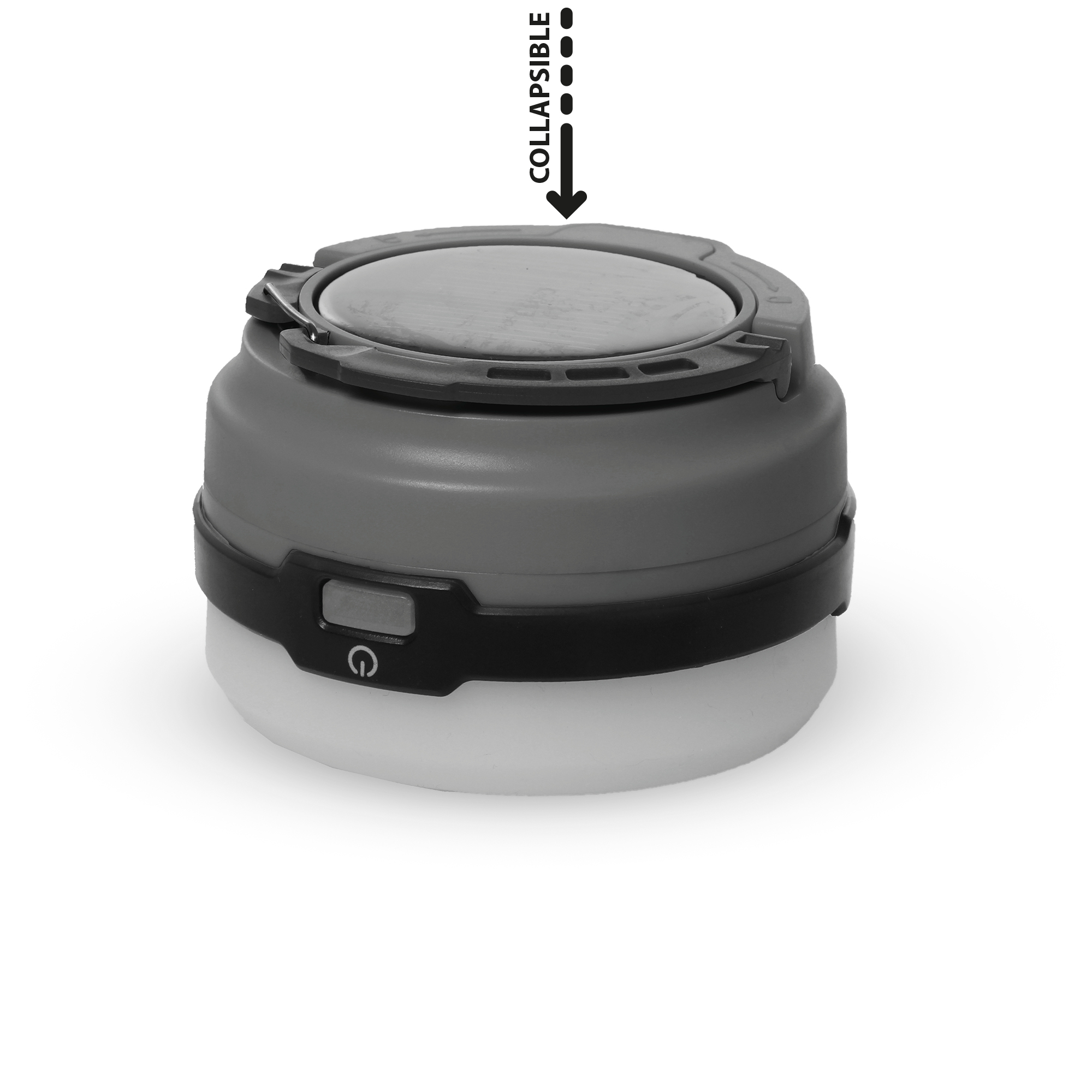LED solar lantern with collapsible shade. Very compact when folded. Lightweight and easy to store. Complete with ON/OFF switch and hook for hanging. Recharges via integrated photovoltaic cell or USB socket.